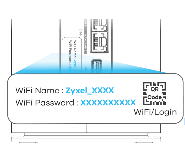 Löydät WiFi-verkon oletusnimen ja -salasanan reitittimen pohjassa olevasta tarrasta. Voit myös yhdistää laitteesi käyttäen QR-koodia, WPS-toimintoa tai suoraan reitittimen LAN-porttiin käyttäen verkkokaapelia.