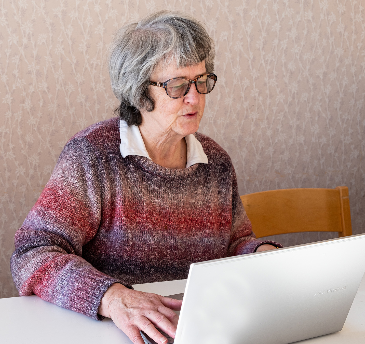 ”Minä aattelin, että kuolen ennen kuin tietokoneaika tulee. Mutta enpähän kerenny kuolemaan. Se tuli vaan”, sanoo Ritva Pökkylä, 79, ja naurahtaa muikeasti päälle. Samalla hän klikkailee kannettavalla tietokoneellaan läpi lääkereseptejä Omakanta-palvelussa. Käsiä vaivaa perinnöllinen vapina, mutta hiiri tottelee hyvin.