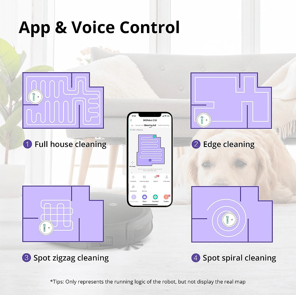 C50 robotti-imuri on kompakti ja matala robottipölynimuri, joka yhdistää imuroinnin ja moppaamisen yhteen laitteeseen. Puolen litran rikkasäiliön voi vaihtaa 0,3 litran vesisäiliöön, jolla voi pestä jopa 120 neliömetriä lattiapintoja. Tämä tehokas robotti-imuri siivoaa itsenäisesti ja väistää esteet kahdeksalla eri siivoustilalla. Riittoisa akku mahdollistaa jopa 120 minuutin tai 90 neliömetrin imuroinnin yhdellä latauksella. Imuria voi hallita helposti älypuhelimella, kaukosäätimellä tai nappia painamalla. C50 robotti-imuri poistaa vaivatta kaikenlaisen lian, kuten pölyn, hiukset, pienet roskat ja lemmikkieläinten karvat myös matoilta. Imurissa on tehokas 2 600 pascalin (Pa) imuteho.