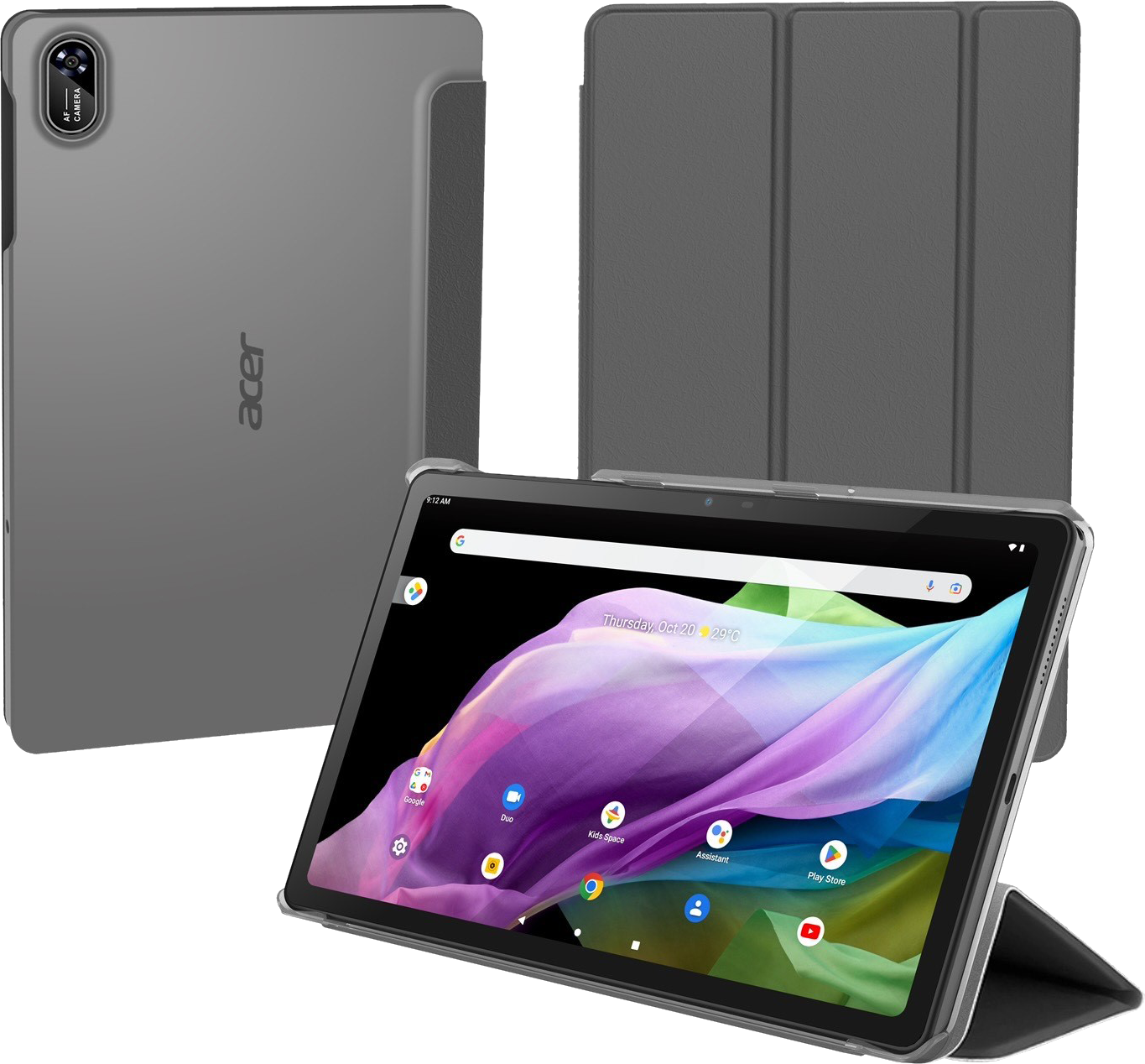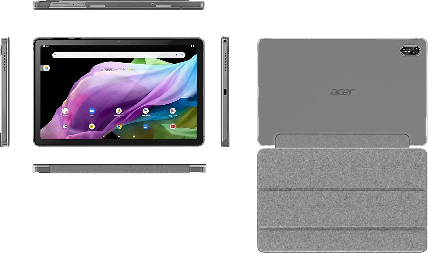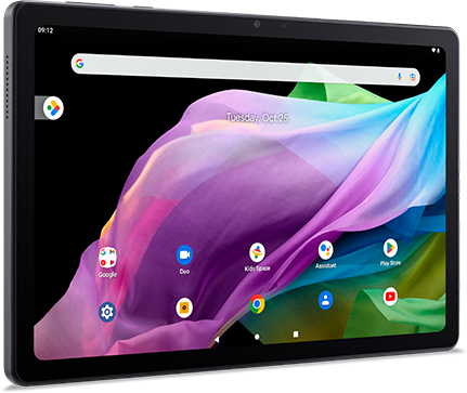 Tällä Android 12 tabletilla videoiden katselu, valokuvien ottaminen ja pelaaminen onnistuu sulavan tehokkaasti. Sen takaavat kahdeksanytiminen MediaTek Kompanio 500 prosessori, jopa 4 Gt:n muisti, 64 Gt:n eMMC-tallennustila ja MicroSD-korttipaikka.
