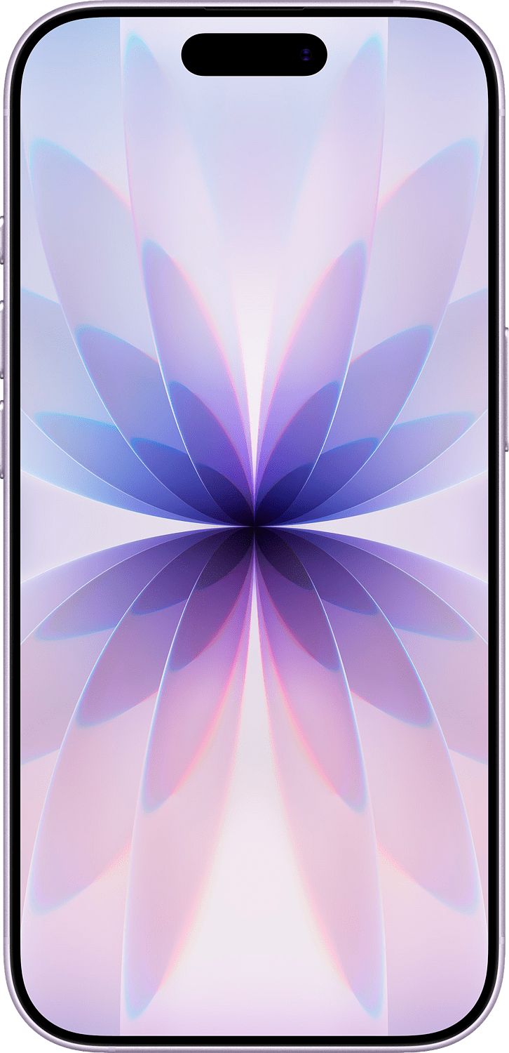 (1) Näyttö seuraa laitteen kauniisti kaartuvia kulmia, jotka rajautuvat suorakaiteen muotoon. Suorakaiteena mitattuna näytön lävistäjä on 6,27 tuumaa (iPhone 17, iPhone 17 Pro), 6,55 tuumaa (iPhone Air) tai 6,86 tuumaa (iPhone 17 Pro Max). Näyttöalueen koko on pienempi.