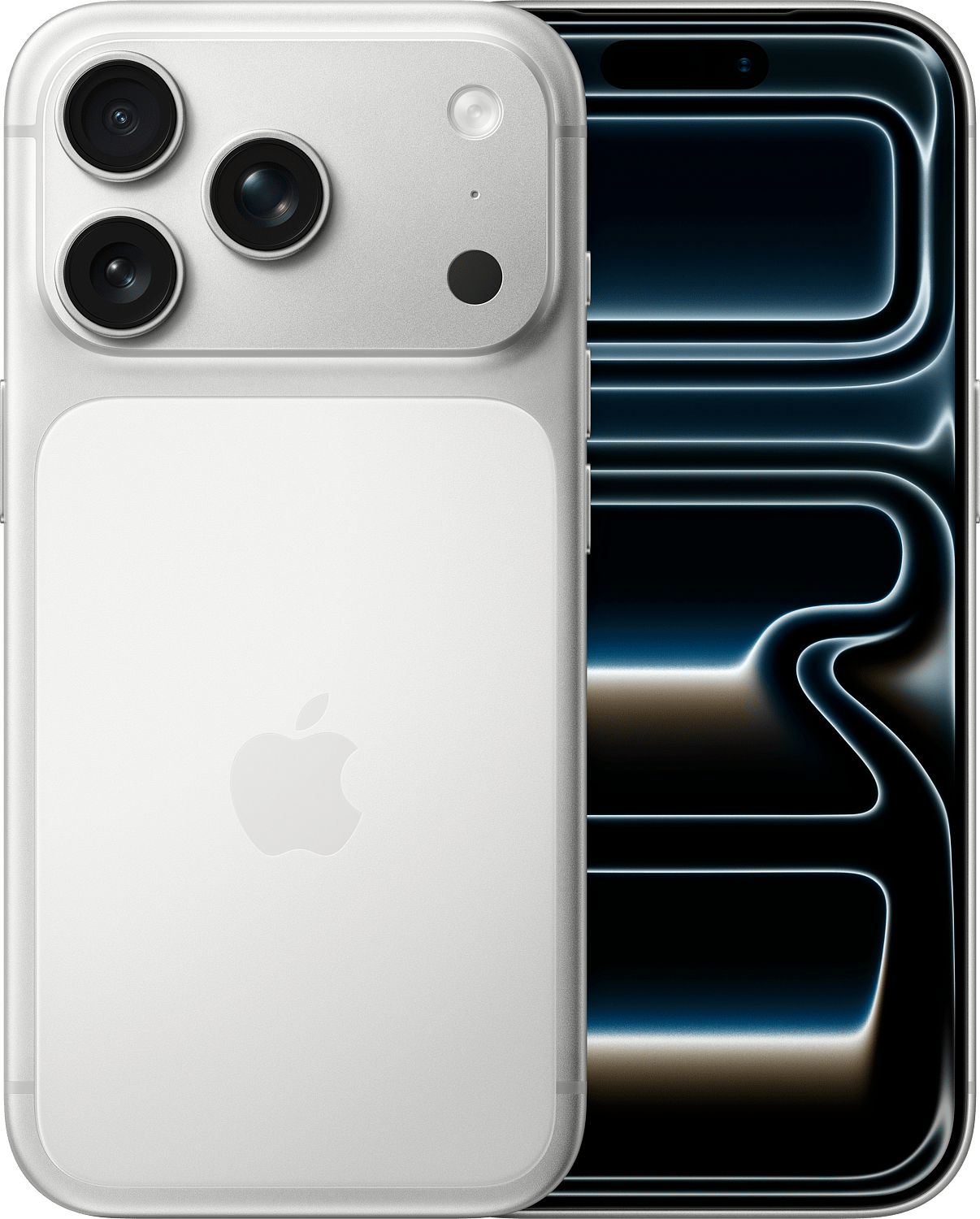 iPhone 17 Pro. Kaikkien aikojen tehokkain iPhone. Loistava 6,3 tuuman näyttö,1 yksirunkoinen alumiinirakenne, A19 Pro siru, 48 Mpix takakamerat ja uskomaton akunkesto.