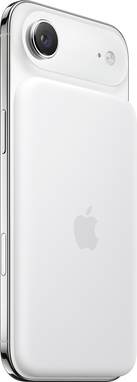 iPhone Airin MagSafe-akku on kehitetty erityisesti iPhone Airia varten. Se on suunniteltu helposti taskuun sujahtavaksi ja tuntuu miellyttävältä kädessä. Se antaa jopa 65 prosenttia lisää akunkestoa iPhone Airille ja kasvattaa akunkestoa pidemmäksi kuin missään muussa iPhonessa.