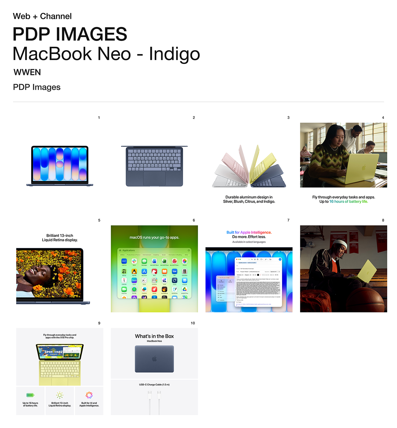 • KAIKKIEN AIKOJEN VÄRIKKÄIN MACBOOK-MALLISTO - Vaihtoehtoina roosa, sitrus, indigo ja hopea, kaikissa samansävyinen näppäimistö. Kestävä alumiinirunko takaa, että MacBook Neo kulkee mukanasi minne ikinä menet.