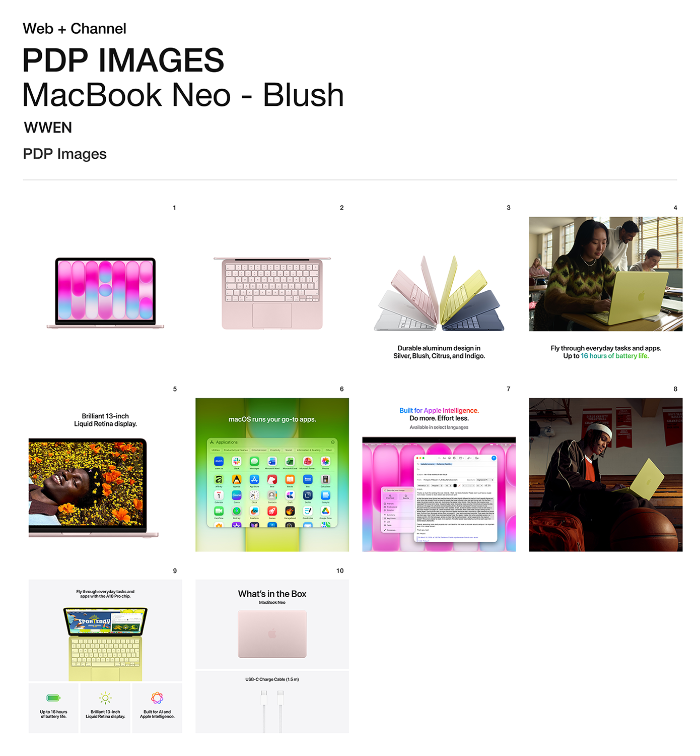 • KAIKKIEN AIKOJEN VÄRIKKÄIN MACBOOK-MALLISTO - Vaihtoehtoina roosa, sitrus, indigo ja hopea, kaikissa samansävyinen näppäimistö. Kestävä alumiinirunko takaa, että MacBook Neo kulkee mukanasi minne ikinä menet.