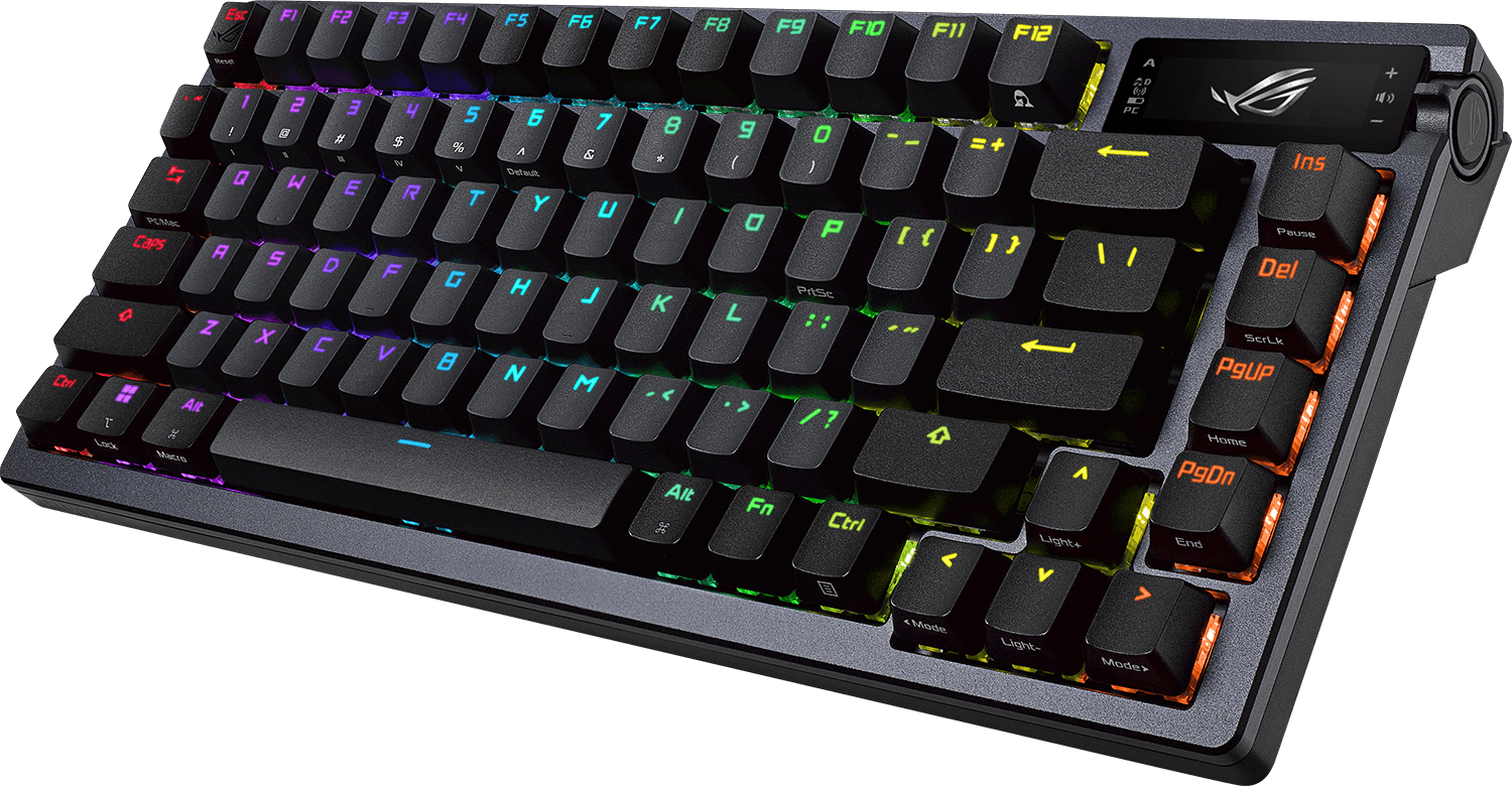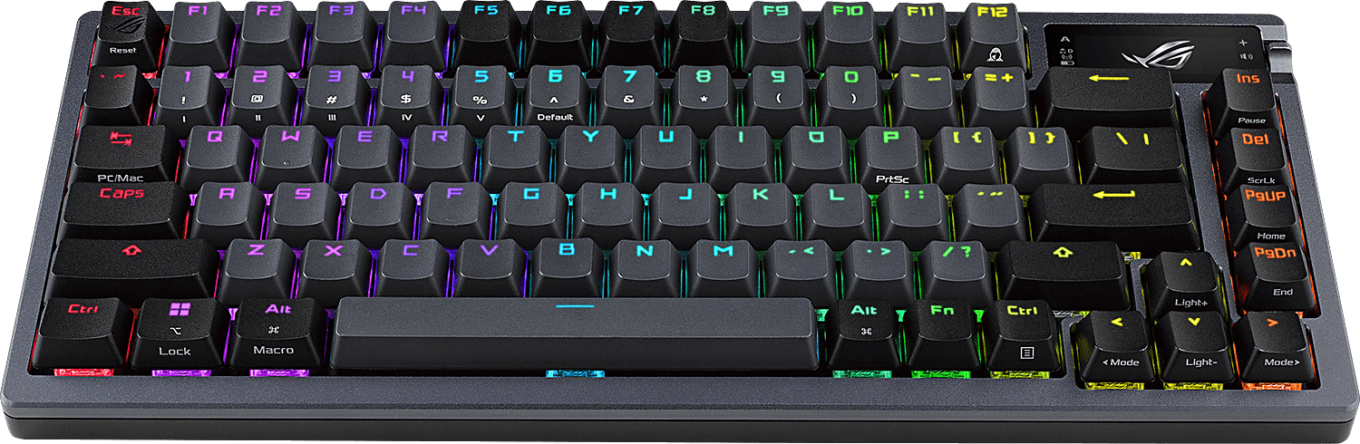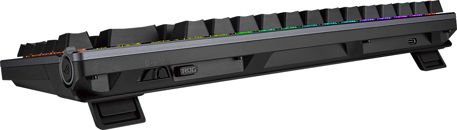 Langaton ROG SpeedNova -teknologia tarjoaa 2,4 GHz:n RF-tilassa (RGB ja OLED pois päältä) jopa yli 2 000 tuntia vakaata, keskeytymätöntä peliaikaa lähes olemattomalla viiveellä. Bluetooth-tilassa voit puolestaan liittää näppäimistöön jopa kolme laitetta samaan aikaan. Kun hyödynnät sekä Bluetooth- että kiinteää USB-yhteyttä, voit pelata ja ladata laitteita samanaikaisesti.