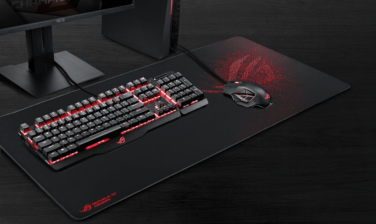 Jättimäisen ROG Sheath -hiirimaton mitat ovat 900 x 440 x 3 mm, joten tilaa riittää varmasti kaikille pelilaitteillesi, kuten kannettavalle tietokoneelle, näppäimistölle ja hiirelle.