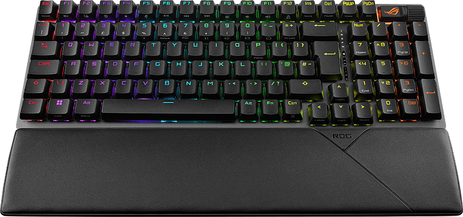 Näppäimistössä on esivoidellut mekaaniset ROG NX Snow -kytkimet, jotka voi vaihtaa vaikka kesken pelin, sekä ensiluokkaisen näppäilykokemuksen takaava vaahtolevy ylimääräisillä kytkinmelua vaimentavilla elementeillä. Lisäksi siinä on pikanäppäimet Xbox Game Bar -työkalulle ja tallennustoiminnoille sekä intuitiivinen, pyöritettävä multiwheel-monitoimisäädin. Näppäimistö on varustettu irrotettavalla rannetuella, ja sen voi säätää kolmeen eri kulmaan.