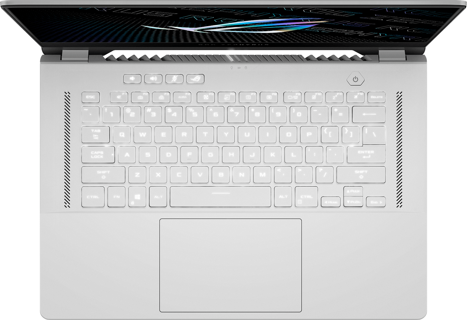 ROG Overstroke -teknologia mahdollistaa nopeammat näppäinkomennot kun taas N-Key-rollover varmistaa, että jokainen painallus rekisteröityy, vaikka useita näppäimiä painetaan samanaikaisesti. Näppäimistön muoto ja sijoittelu on suunniteltu tarkkuuden ja ergonomian pohjalta. Mikäli haluat kytkeä Zephyrus G15:n ulkoiseen näyttöön töissä tai kotona pelatessa, on se helppoa USB-C-portin kautta - DisplayPort-yhteensopivuus tarjoaa videolähdön ulkoisille monitoreille. Käytettävissä on myös HDMI 2.0b -portti, josta saa ulos 60 Hz:n signaalin 4K UHD -televisioille ja monitoreille. Zephyrus G15:n oma 240Hz -virkistystaajuuden WQHD IPS -paneeli 3ms vasteajalla on omiaan niin pelaamiseen kuin tehotyöhön laajojen katselukulmien ja nopean ruudun päivittämisen ansiosta. Näyttö on lisäksi Pantone-validioitu ja 100% DCI-P3 -väriavaruuden kattava. Näyttö tukee Free-Sync-teknologioita, joten se on täydellinen e-peleihin, kuten CS:GO-, League of Legends- ja Apex.