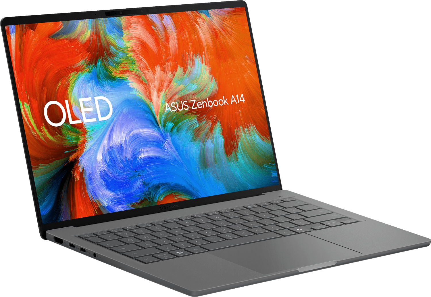 ASUS Lumina OLED Zenbook A14:ssä on ASUS Lumina OLED -näyttö, joka tarjoaa upean visuaalisen kokemuksen. Tämä 14-tuumainen OLED HDR NanoEdge HDR -näyttö tarjoaa erittäin eloisaa ja yksityiskohtaista visuaalista kuvaa 100 %:n DCI-P3-väriasteikolla, joka sopii täydellisesti tarkkaan luovuuteen ja eloisaan viihteeseen. Näyttö vähentää haitallista sinistä valoa 70 %, mikä parantaa silmien hoitoa ja unen laatua. Sisäänrakennettu värisensori säätää kirkkautta ja värilämpötilaa ympäristön valon mukaan varmistaen täydellisen visuaalisen ilmeen missä tahansa ympäristössä, ja tehokkaat kaksi superlineaarista kaiutinta tarjoavat kristallinkirkkaan äänen."