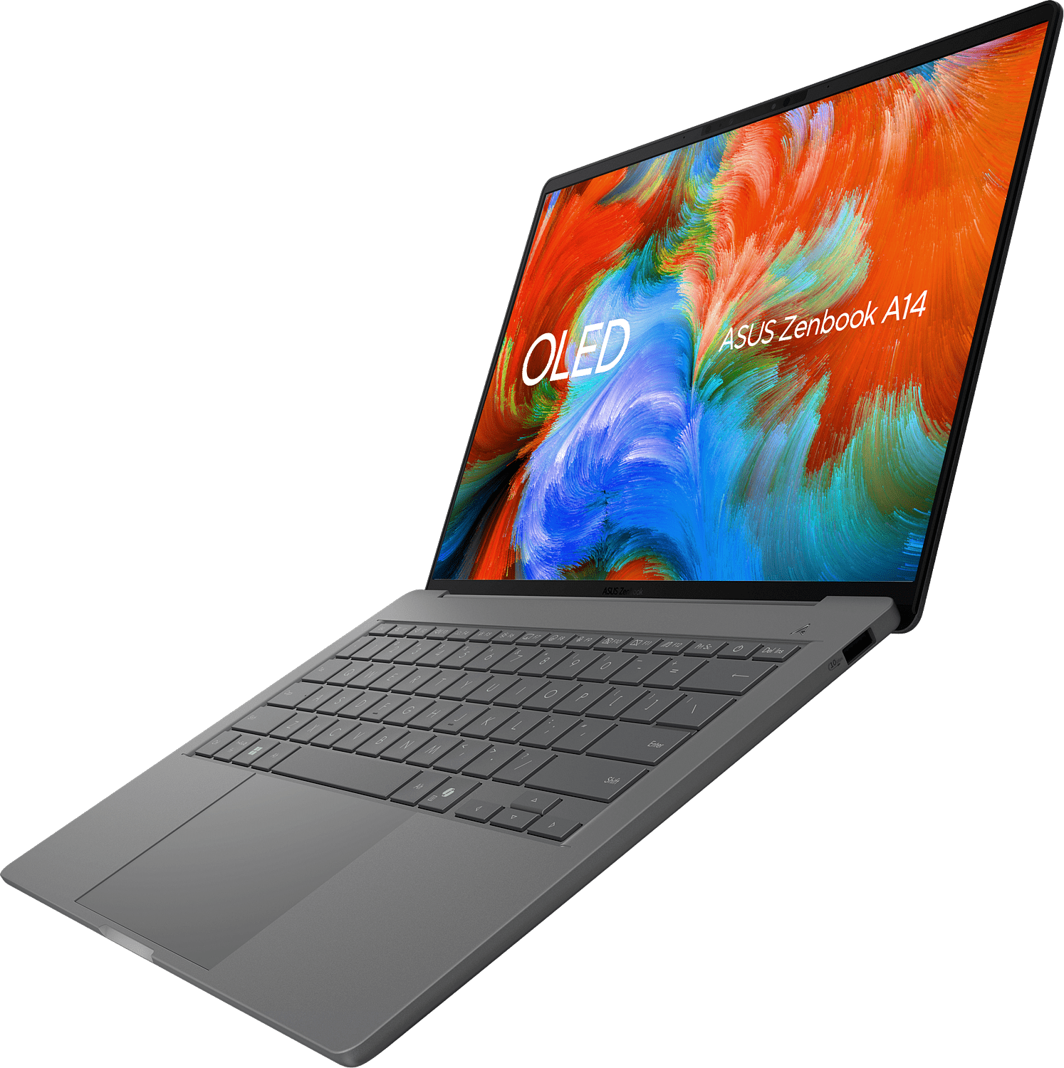 ASUS Zenbook A14 Tee isompia asioita kevyemmällä muotoilulla! Vajaan kilon painoinen Zenbook A14 on syntynyt kulkemaan. Sen Snapdragon® X-sarjan prosessori vapauttaa Copilot+:n kaikki edut ja antaa elämäntyylillesi voimaa usean työpäivän akunkestolla. Täysin uusi minimalistinen muotoilu, jossa on sävyjä sävyyn ja luonnon inspiroimia materiaaleja, huokuu eleganssia. Kannettavan tietokoneen kansi, näppäimistön kehys ja pohja on valmistettu Ceraluminum?-materiaalista, joka on hämmästyttävä kulumista, naarmuuntumista ja tahraantumista estävä materiaali.