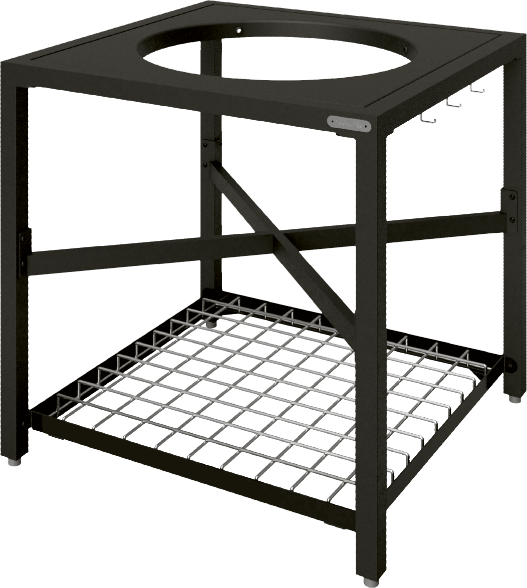 Tämän Big Green Egg pöytärungon jalat ja runko on valmistettu jauhepinnoitetusta alumiinista ja teräksestä. Pöytäkehikossa on paikka EGGille ja ruostumattomasta teräksestä valmistettu ritilätaso, koukkutanko ruuanlaittovälineille ja 4 säädettävää jalkaa. Voit myös kiinnittää jalkojen alle 10 cm kokoiset pyörät.(ostettava erikseen)