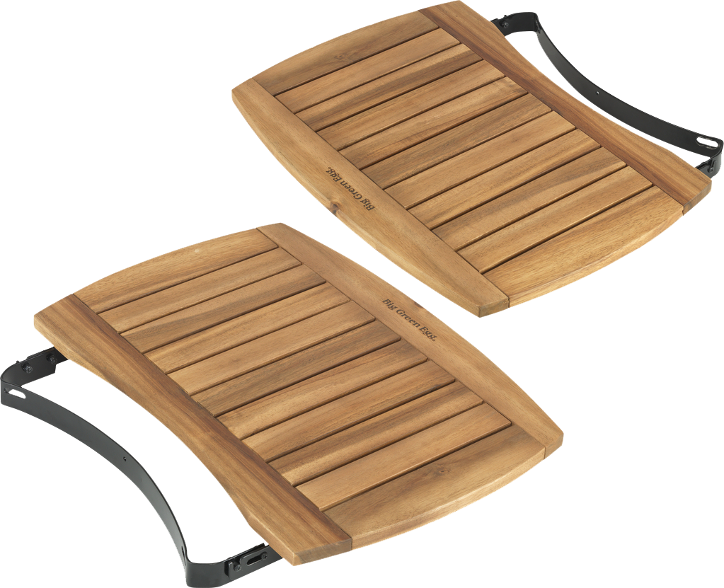 Big Green Eggin akaasiapöydät toimitetaan kiinnittimien kanssa Taita pöydät vain auki.