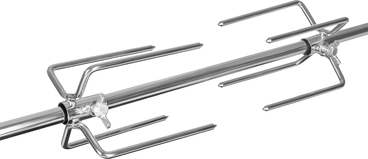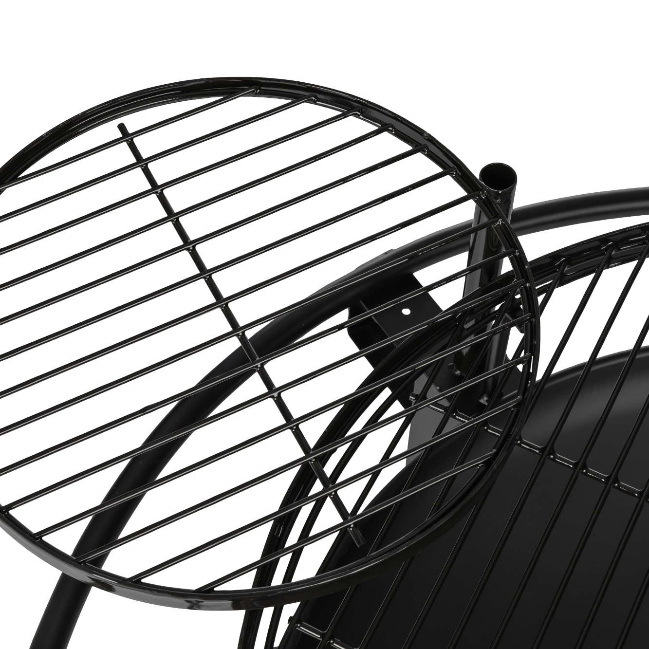 Tulisijaa kiertää käytännöllinen metallinen kaari, johon voi ripustaa grillausvälineet, tarvikkeet tai vaikka maustekorin. Tämä tekee ruoanlaitosta sujuvaa ja pitää työvälineet aina käden ulottuvilla. Grillaus- ja lämmitysritilät on valmistettu posliiniemaloidusta teräksestä, mikä varmistaa tasaisen kuumenemisen sekä helpon puhdistettavuuden käytön jälkeen.