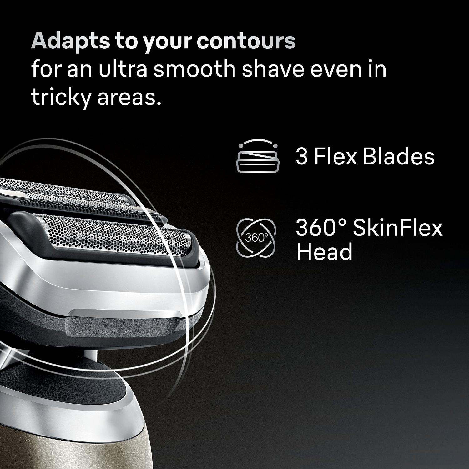Braun Series 7 72-C1200s -parranajokone vie ajokokemuksen uudelle tasolle. Sen innovatiivinen 360° SkinFlex -ajopää mukautuu kasvojen muotoihin ja takaa tasaisen lopputuloksen myös vaikeasti saavutettavilla alueilla. Kolme erilaista ajotilaa - turbo, hellävarainen ja vakio - mahdollistavat ajon räätälöinnin ihon herkkyyden ja ajotottumusten mukaan.
