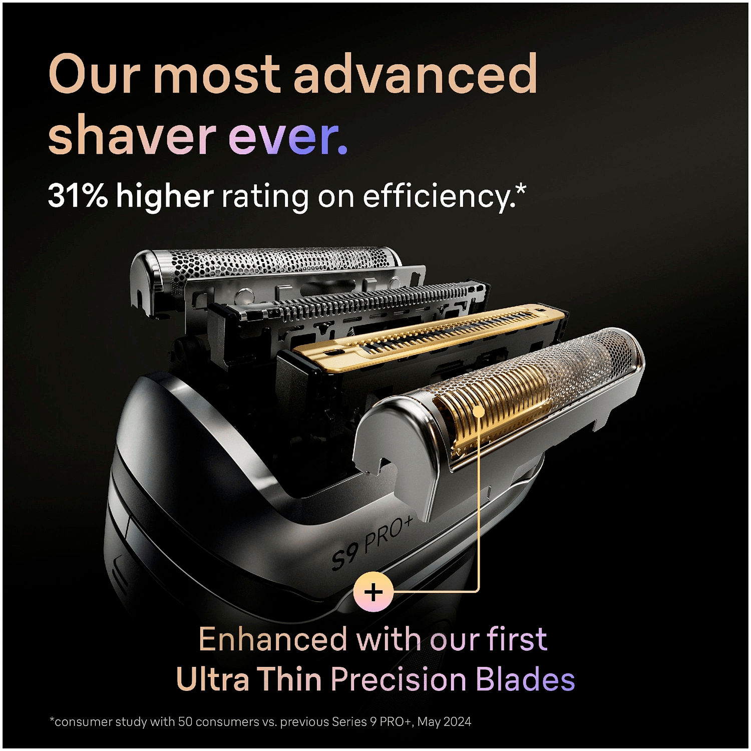 Series 9 PRO+ hyödyntää ultraohuita tarkkuusteriä, jotka leikkaavat partakarvat läheltä ihoa ilman ärsytystä. Pro SensoAdapt -teknologia analysoi parran tiheyden 300 kertaa sekunnissa ja säätää ajotehoa automaattisesti, mikä takaa tasaisen ja miellyttävän lopputuloksen riippumatta parran pituudesta tai tiheydestä.