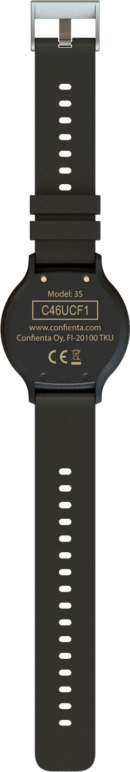 Nopea käyttöönotto Käyttöönotto tapahtuu Confientan verkkosivuilla turvarannekkeen takapuolelta löytyvän aktivointikoodin avulla. Nopeaa ja helppoa!
