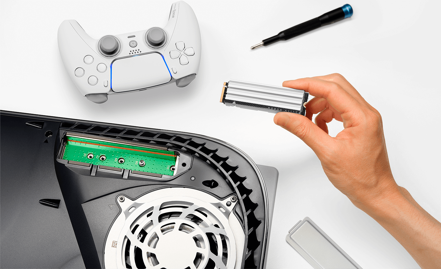 Kompakti M.2 2280 rakenne: Asennettavissa suoraan PlayStation 5 konsoliin, täyttää kaikki PS5 M.2 kokovaatimukset.