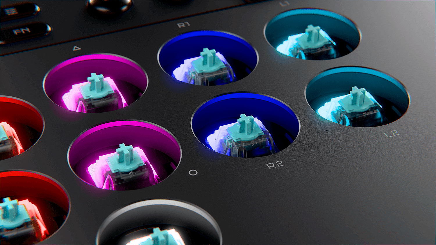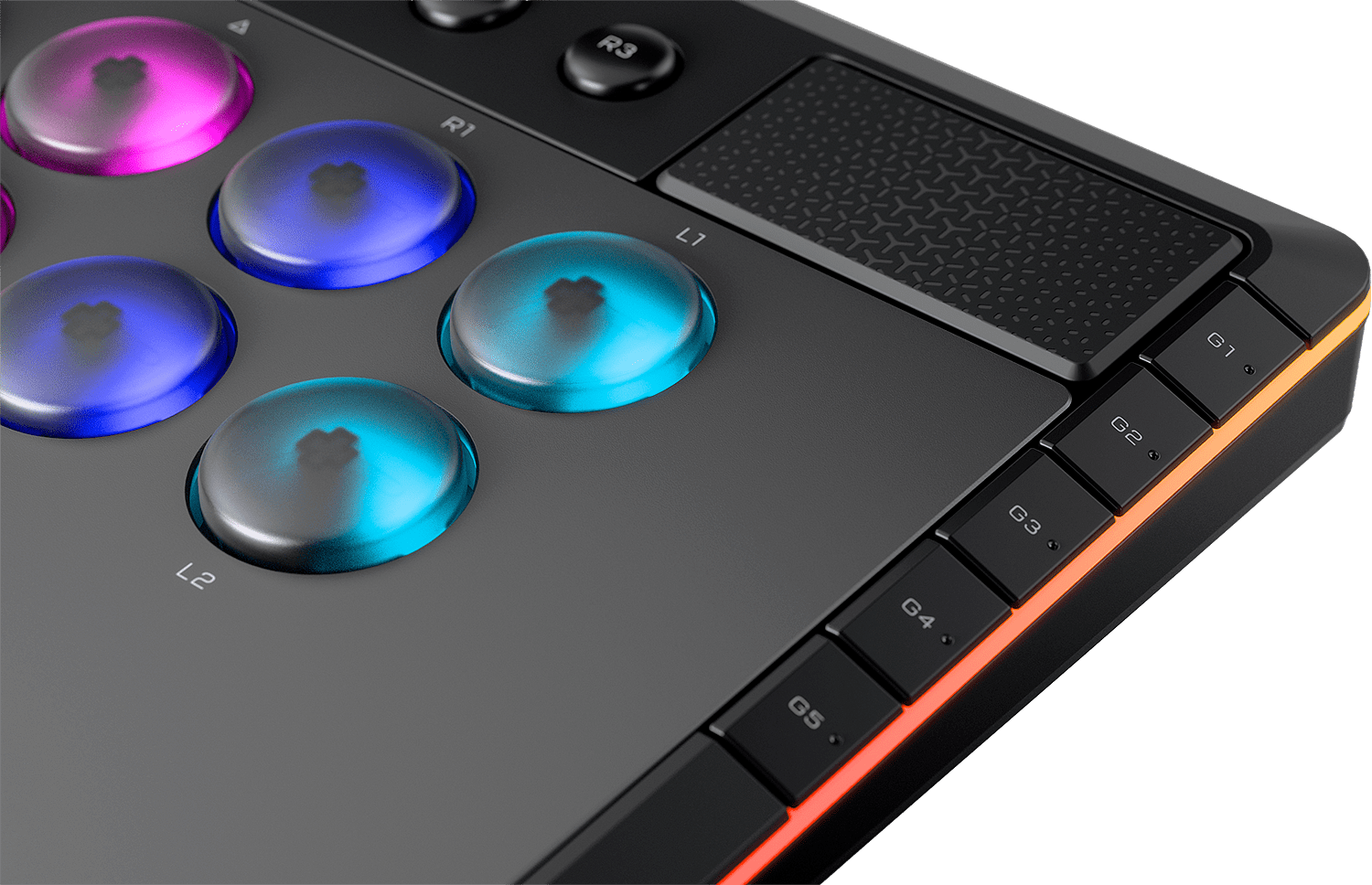 - 360 asteen värivalaistus ja vaihdettava ylälevy: Määritä dynaamiset RGB-valoasetukset valaisevalle 360° LightEdge-reunalle ja 15 yksittäiselle peruspainikkeelle. Vaihdettava magneettinen ylälevy tarjoaa pelaajille lisävarusteen, jolla he voivat ilmaista itseään.