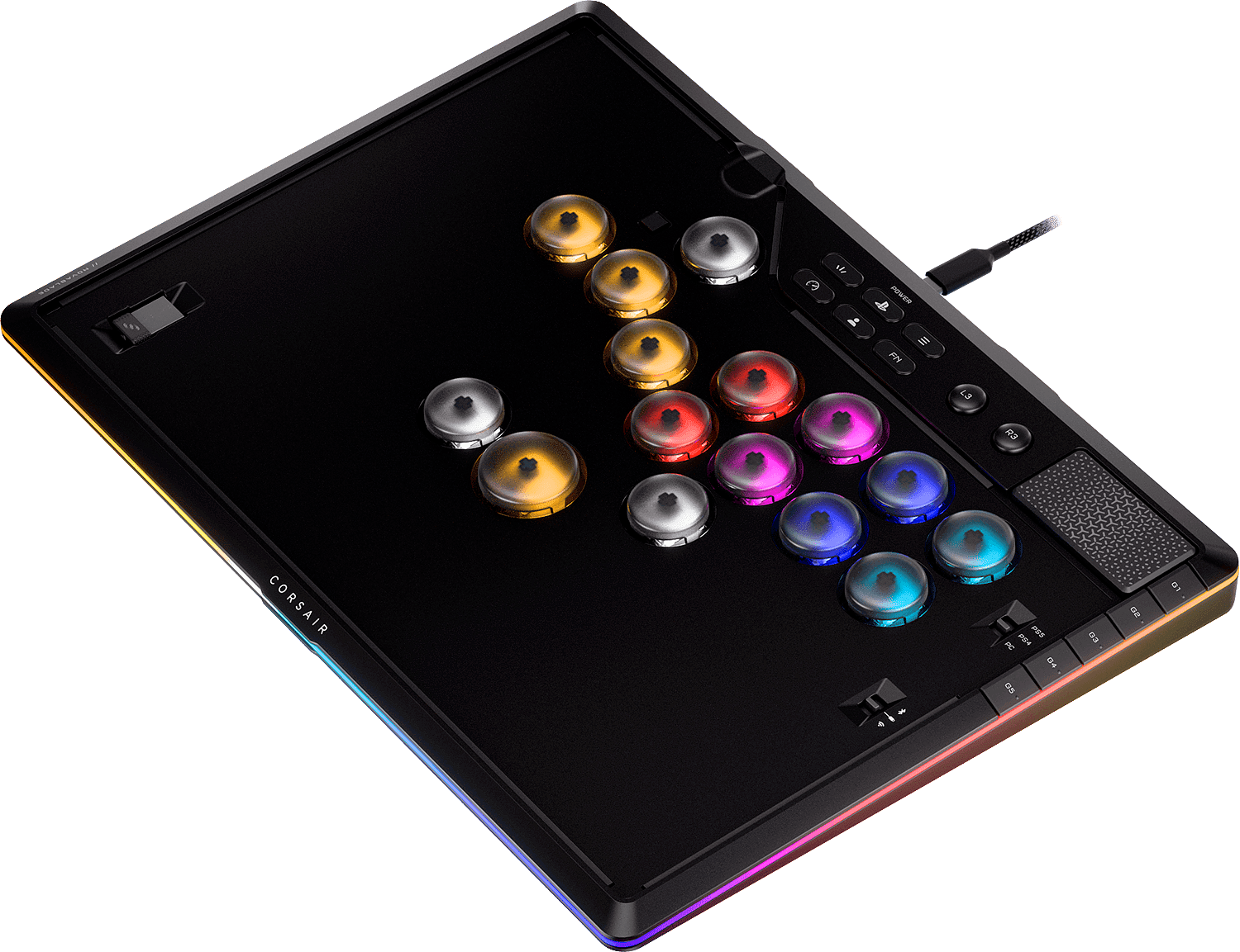 Painele itsesi etulyöntiasemaan ammattilaiskäyttöön soveltuvalla 15-näppäimisellä langattomalla CORSAIR Novablade Pro Hall-efektiohjaimella, jossa ei ole vipuja. Reagoi täydellisellä ajoituksella erittäin tarkoilla CORSAIR MGX Hyperdrive -kytkimillä, jotka mahdollistavat nopeammat ja puhtaammat syötöt. Kytkinten pikaresetointi (Rapid Trigger) mahdollistaa näppäinten välittömän nollautumisen 0,1 mm:n jälkeen, jolloin voit muuntaa nämä millisekunnit nopeammiksi kaksoisnapautuksiksi ja painikkeiden painalluksiksi. Game Mode -pelitilan ansiosta voit olla turnausvalmis kilpailuun optimoiduilla asetuksilla yhden napin painalluksella. Voit vaihtaa painikeasetuksia välittömästi 5 muistiprofiilin avulla. Nauti saumattomasta kolminkertaisesta yhteydestä, joka mahdollistaa 2,4 GHz:n langattoman tilan, Bluetooth® -tilan ja johdotetun tilan. Virallinen lisensoitu PlayStation® -tuote, joka on yhteensopiva sekä PlayStation 5- ja PlayStation 4-konsolien että PC:n kanssa