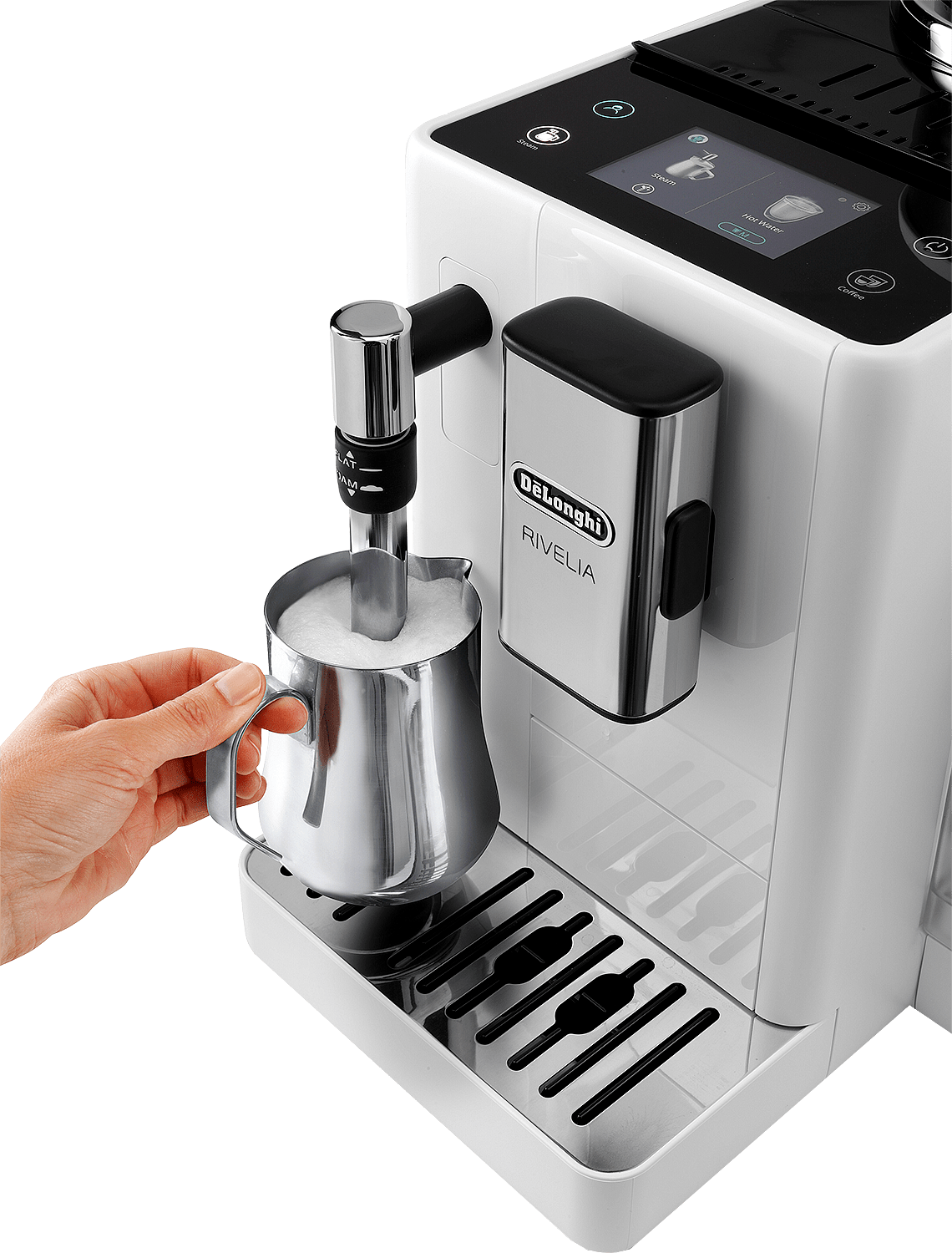 Ydinteknologialtaan täysin uudelleen kehitelty Rivelia edustaa DeLonghi kahviautomaattien kompaktia muotokieltä tavoitteenaan mahduttaa viimeisin teknologia myös pieniin keittiöihin ja tarjota käyttäjilleen mahdollisimman huolettomat kahvihetket. Automaattinen kalkinpoisto- ja huuhteluohjelma huolehtivat laitteen sisäpiirin puhdistuksesta ja kaikki irrotettavat osat on helppo purkaa pesua varten. Vesipestävän uutinyksikön puhdistamiseen et tarvitse erikseen hankittavia puhdistuaineita. Tilava 1,4 L vesisäiliö on helppo täyttää laitteen edestä käsin, laitetta työtasolla liikuttamatta.