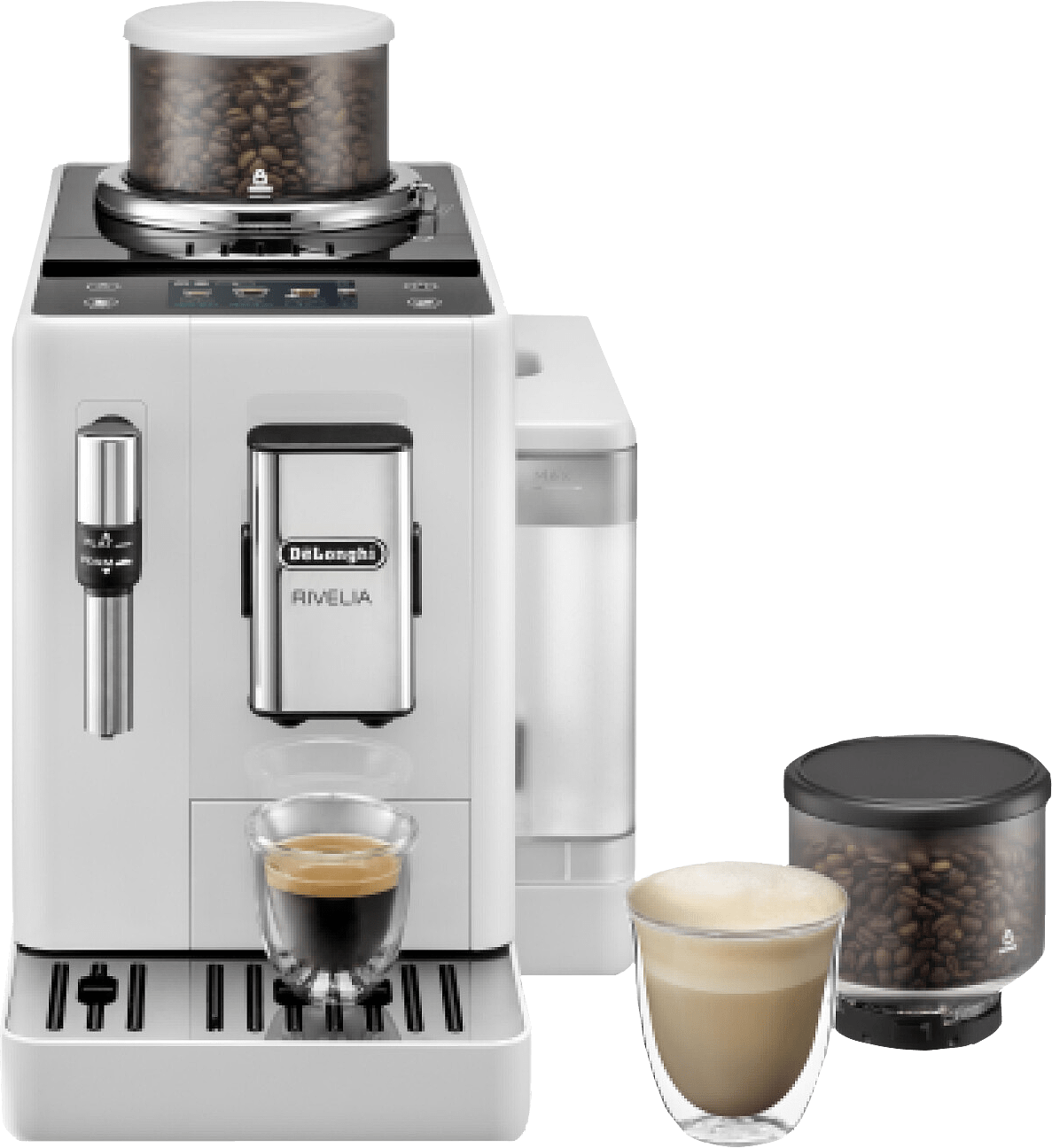 DeLonghi Rivelia - uusinta teknologiaa pienessä koossa! Johtavan kahvilaitevalmistajan kooltaan kompaktiksi muotoiltu kahviautomaatti tarjoaa käyttöösi 8 suoravalintaista kahvireseptiä, kaksi helposti vaihdettavaa papusäiliötä sekä värilliseltä hipaisunäytöltä hallittavan Bean Adapt -teknologian. Täydellisen maitokahvisi viimeistelet säädettävän Cappuccinatore -höyrysuuttimen avulla vaivattomasti. Käyttäjäystävällinen kahviautomaatti on helppo ottaa käyttöön värillisen hipaisunäytön neuvojen ja animaatioiden ystävällisellä opastuksella.