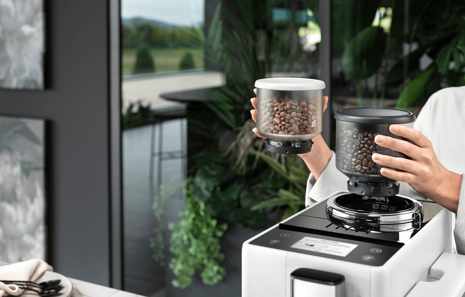 Kaksi papusäiliötä tarjoavan Bean Switch -järjestelmän ansiosta voit vaihtaa ja tutkia helposti erilaisia papuvaihtoehtoja ja värilliseltä 3,5" hipaisunäytöltä helposti hallittava Bean Adapt -teknologia mukauttaa automaattisesti Espresson jauhatustason, kahviannoksen ja uuttamislämpötilan valitsemiesi papujen mukaan. Halutessasi voit valmistaa kahvia myös kahvijauheesta. Irrotettava kahvijauhesuppilo ja kahvijauheen mittalusikka löytyvät laitteen päällä sijaitsevasta kätevästä säilytyslokerosta.