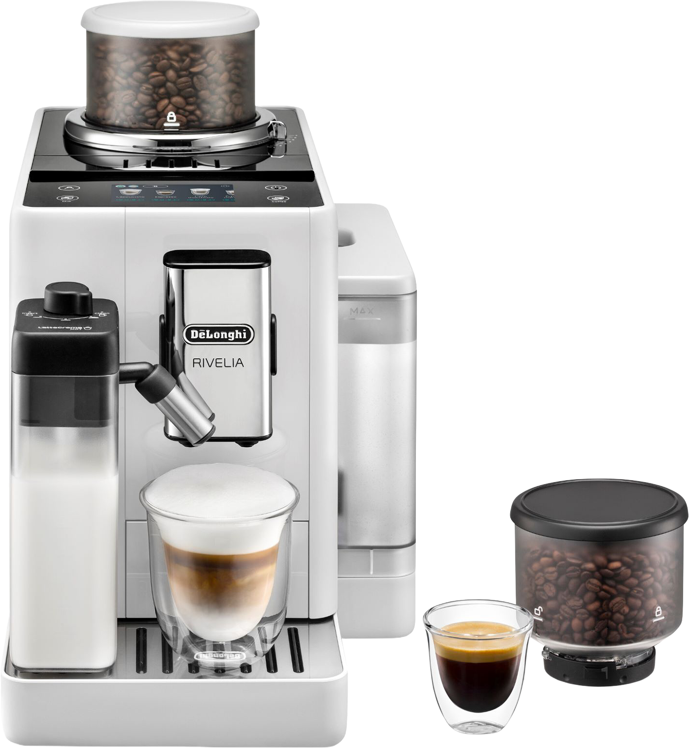 DeLonghi Rivelia - uusinta teknologiaa pienessä koossa! Johtavan kahvilaitevalmistajan kooltaan kompaktiksi muotoiltu kahviautomaatti tarjoaa käyttöösi 8 suoravalintaista kahvireseptiä, kaksi helposti vaihdettavaa papusäiliötä sekä värilliseltä hipaisunäytöltä hallittavan Bean Adapt -teknologian. Täydellisen maitokahvisi viimeistelet säädettävän Cappuccinatore -höyrysuuttimen avulla vaivattomasti. Käyttäjäystävällinen kahviautomaatti on helppo ottaa käyttöön värillisen hipaisunäytön neuvojen ja animaatioiden ystävällisellä opastuksella.
