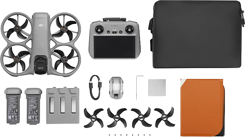 Fly More Combo sisältää kolme älykästä lentoakkua ja Two-Way Charging Hub -latauskeskuksen, joka mahdollistaa tehokkaan ja rinnakkaisen lataamisen. 42 Gt sisäinen tallennustila, nopea Wi‑Fi 6 -tiedonsiirto sekä älykkäät toiminnot, kuten Spotlight Free ja ActiveTrack 360°, tekevät kuvaamisesta ja materiaalin jakamisesta sujuvaa.