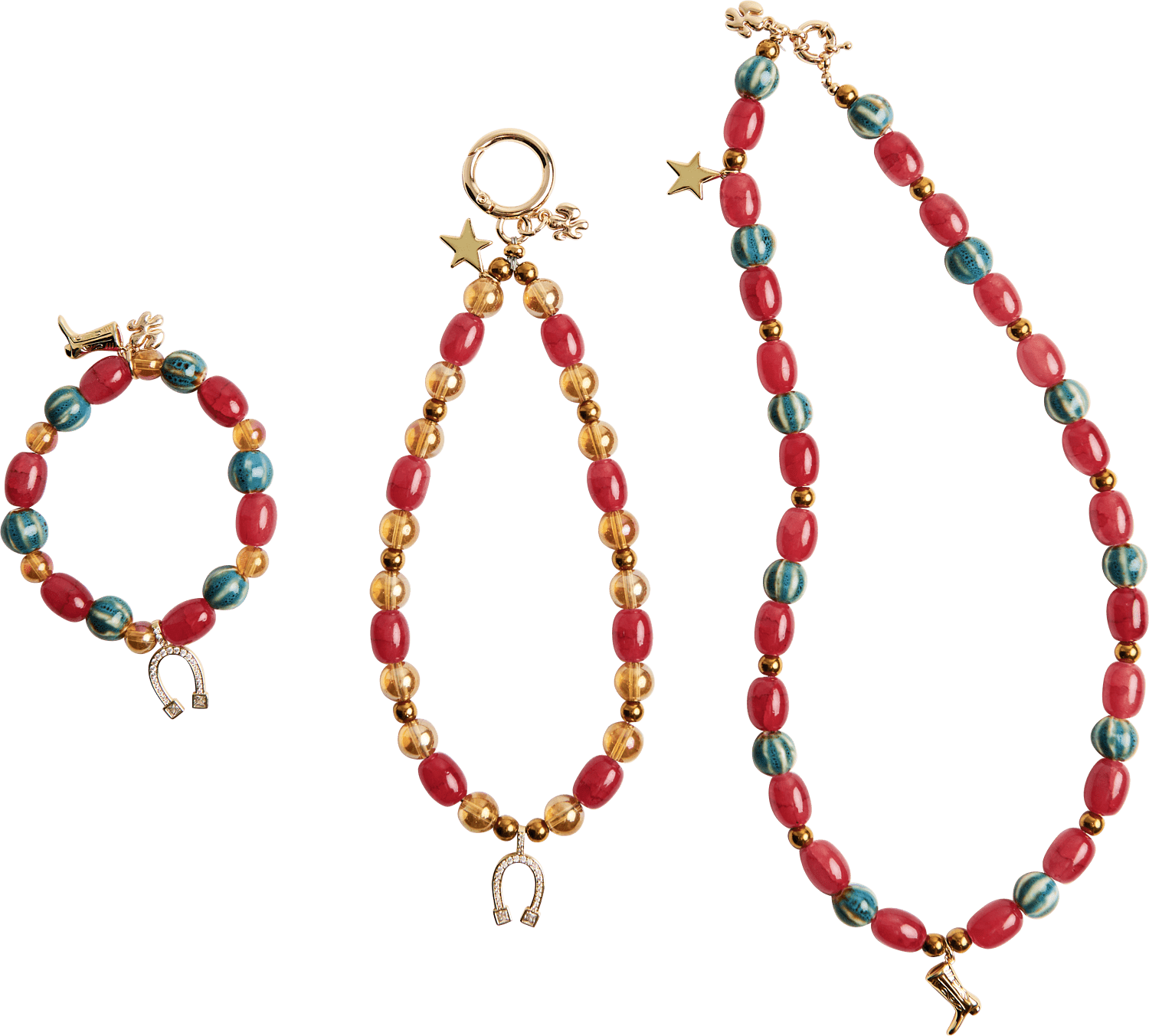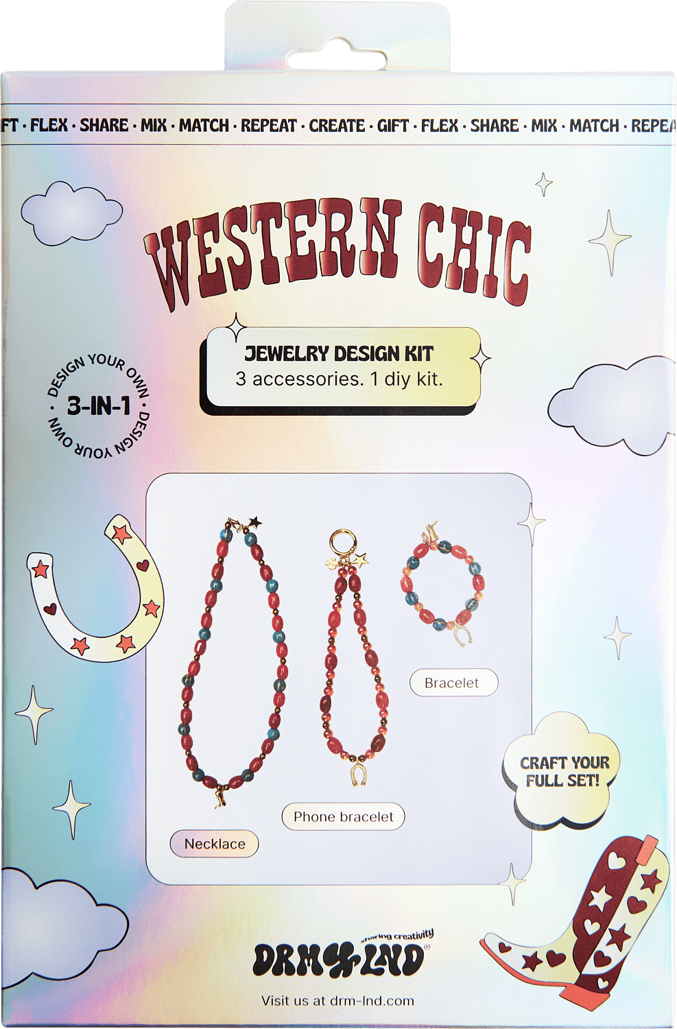 Tuotepaketti sisältää: - 1 × kaulakoru - 1 × rannekoru - 1 × puhelinranneke - Huolellisesti valitut helmet & teemakorut - Lukot, nauhat ja kiinnikkeet - Helmialusta & työkalut kokoamiseen - QR-linkki tyylittelytutorialiin