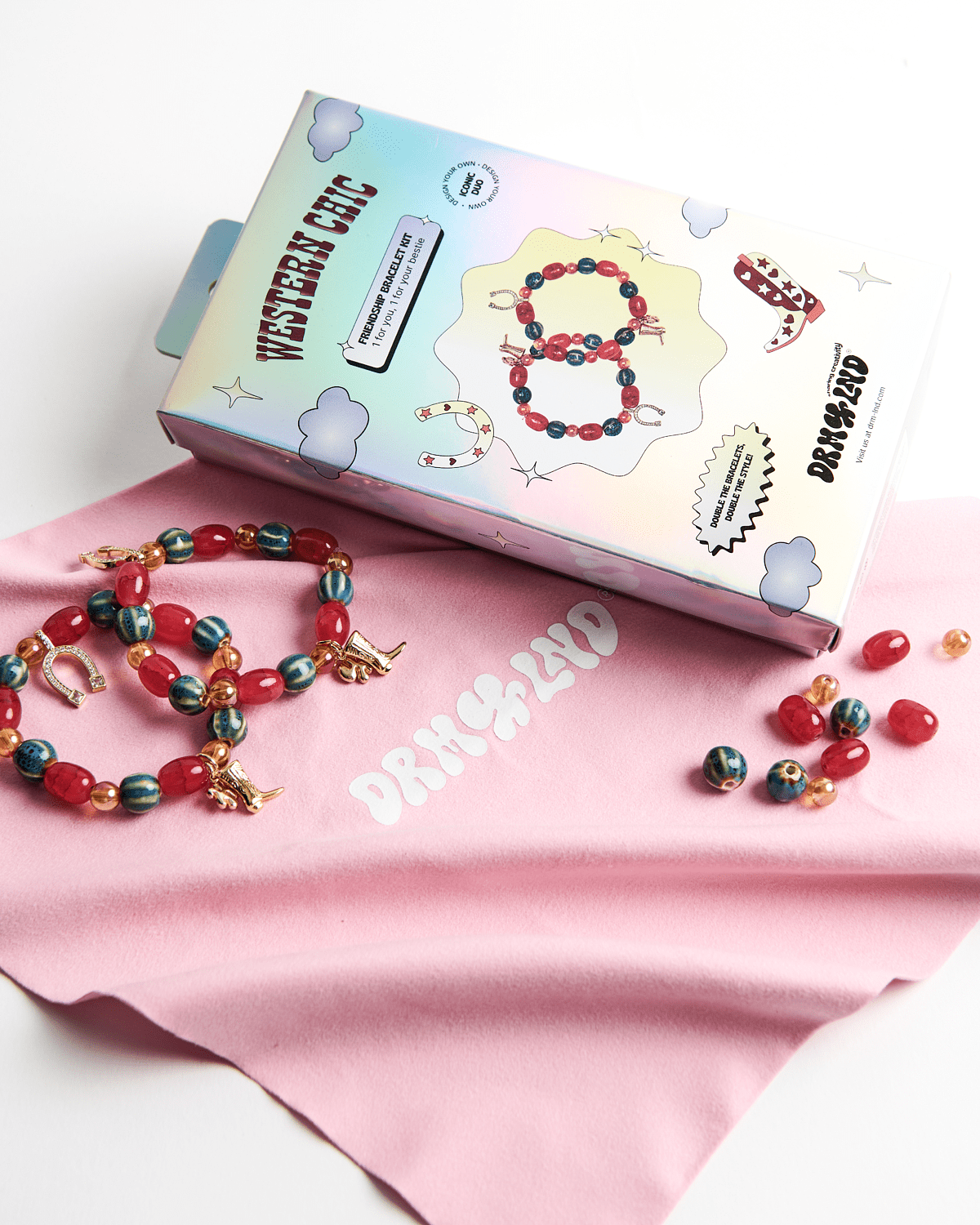 Tuotepaketti sisältää: - 1 × helmialusta (kangas) - 1 × helmineula - 2 × joustonauha - 40 cm helmiä - 4 × koruriipusta - 2 × logoriipusta