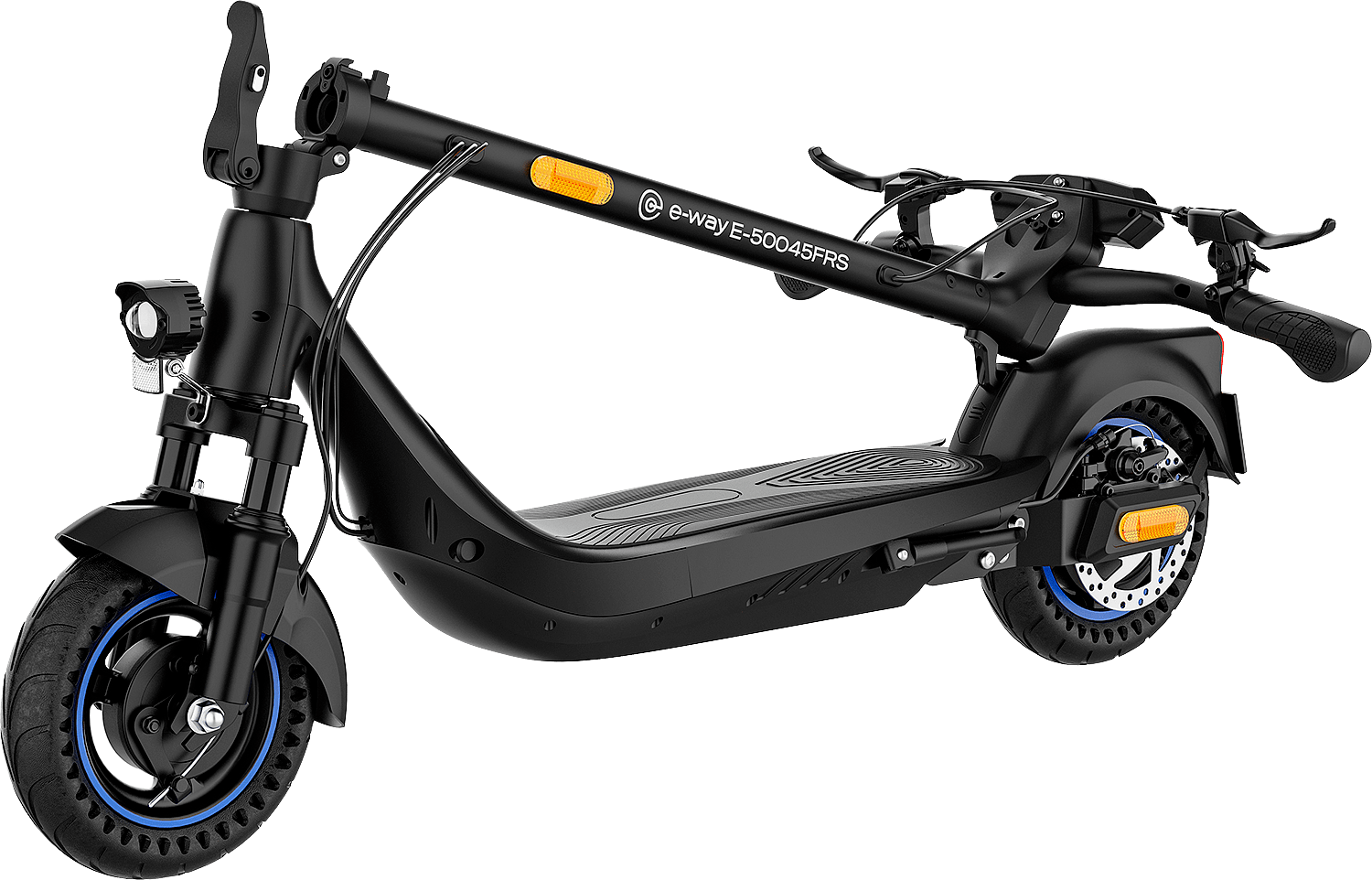 E-Way E50045FRS noudattelee E-Wayn uutta muotoilukieltä, johon lukeutuu moderni rungon muotoilu sekä täysin uudistettu leveä, kuljettajaystävällinen ja informatiivinen LED-näyttö. E-Wayn uusissa 5-sarjan laudoissa on myös suuremmat 10-tuuman renkaat, jotka aikaisemmin ovat olleet ainoastaan 6-sarjassa. Suuremmat renkaat tuovat tukevuutta ja mukavuutta ajamiseen, ja renkaat ovat, kuten kaikissa E-Way sähköpotkulaudoissa, puhkeamattomat honeycomb-renkaat.