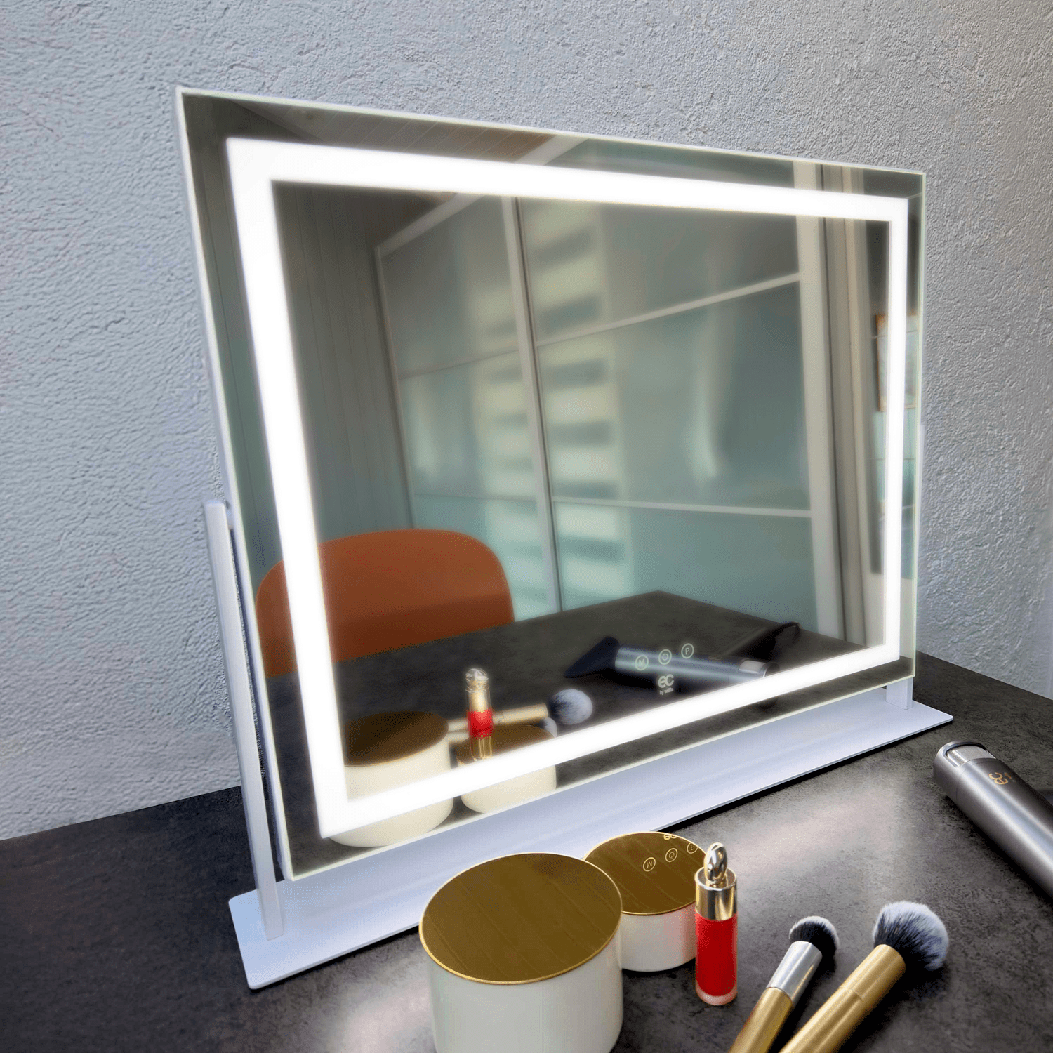 EC by Wilfa Sparkle yhdistää kompaktin muotoilun ja ammattimaisen valaistuksen. Neljän sivun LED-valaistus takaa 360° tasaisen valon ilman varjoja. Irrotettava suurennuspeili ja puhelinteline tuovat tarkkuutta ja mukavuutta - olipa kyseessä nopea arkirutiini tai huolellinen iltameikki. Lisäksi USB-A ja USB-C-lähtöportit mahdollistavat laitteiden lataamisen valmistautumisen aikana.