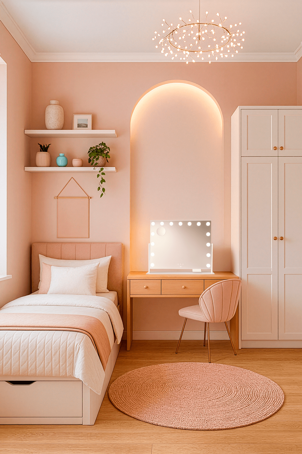 Sisäänrakennetut USB-A ja USB-C-portit mahdollistavat laitteiden lataamisen valmistautumisen aikana. Mukana tuleva puhelinteline kiinnittyy peiliin, joten voit seurata ohjeita tai osallistua videopuheluihin samalla kun laittaudut.