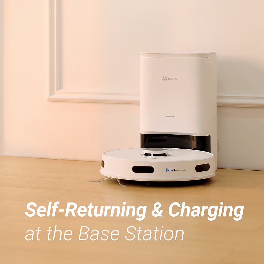 Ezviz RE5S Plus:n avulla sinun ei enää tarvitse huolehtia ikävistä ja toistuvista siivoustehtävistä, sillä se on räätälöity nykyaikaisten kotitalouksien tarpeisiin laajennetuilla toiminnoillaan. 9 000 Pa:n imutehollaan RE5S Plus varmistaa, että lattia voidaan lakkaista huolellisesti ja perusteellisesti. Parannettu 3-in-1-rullaharja on suunniteltu käyttämään täyttä käyttövoimaansa pölyn poistamiseen ilman, että hiukset sotkeutuvat. Vielä parempi, kietottava tukiasema ei vain lataa, vaan myös kerää ja tiivistää pölyn, joten voit työskennellä täysin handsfree-tilassa jopa 90 päivää.
