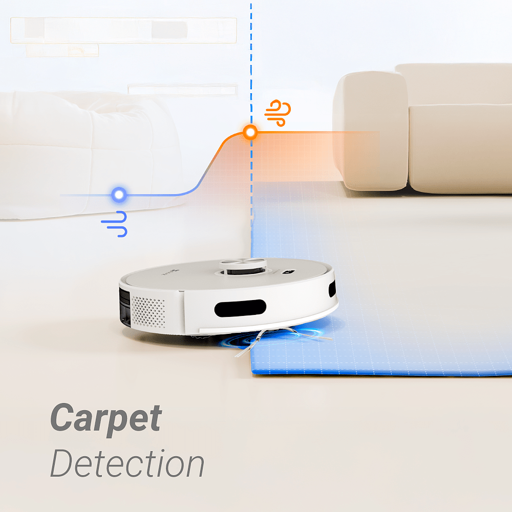 RE5S Plus tietää, että kova lika ja kevyt pöly tarvitsevat voimakasta imua, joten se on nostanut imutehon vaikuttavaan 9 000 Pa:iin, mikä on yli kaksinkertainen vanhaan malliin verrattuna. Nyt nuo pinttyneet likaiset paikat ovat menneisyyttä. Jos sinulla on kotona kalliita mattoja, RE5S Plus on ehdottomasti oikea valinta. Kun se havaitsee maton puhdistuksen aikana, se lisää automaattisesti imutehoaan päästäkseen eroon siellä piilevästä liasta tai hiuksista.