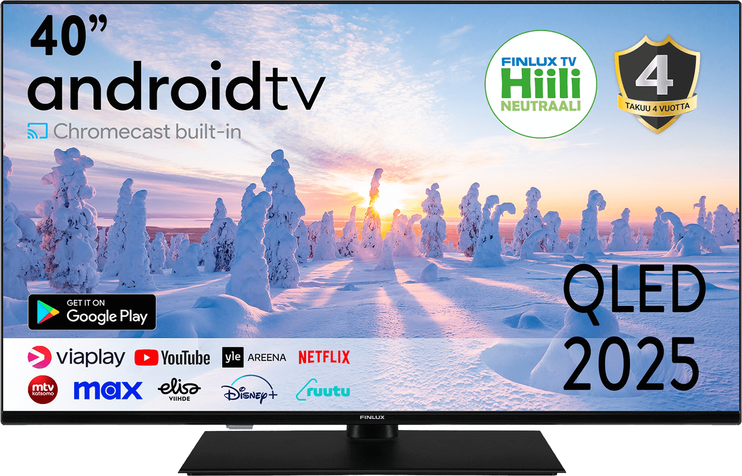Finlux 40" G10 QLED Android TV, 40G10.2ACI, tarjoaa uuden sukupolven kuvanlaadun Quantum-Dot teknologiaa hyödyntäen. QLED teknologia tuottaa laajemman sävymaailman, syvemmät kontrastit ja terävämmän kuvan myös tummissa kohtauksissa..QLED tekniikan ansiosta Television kuvan valovoimaisuus tekee katselukokemuksesta miellyttävämmän myös kirkkaasti valaistussa tilassa. G10 TV:n avulla voit heittäytyä täysillä uuteen värikkäämpään maailmaan!