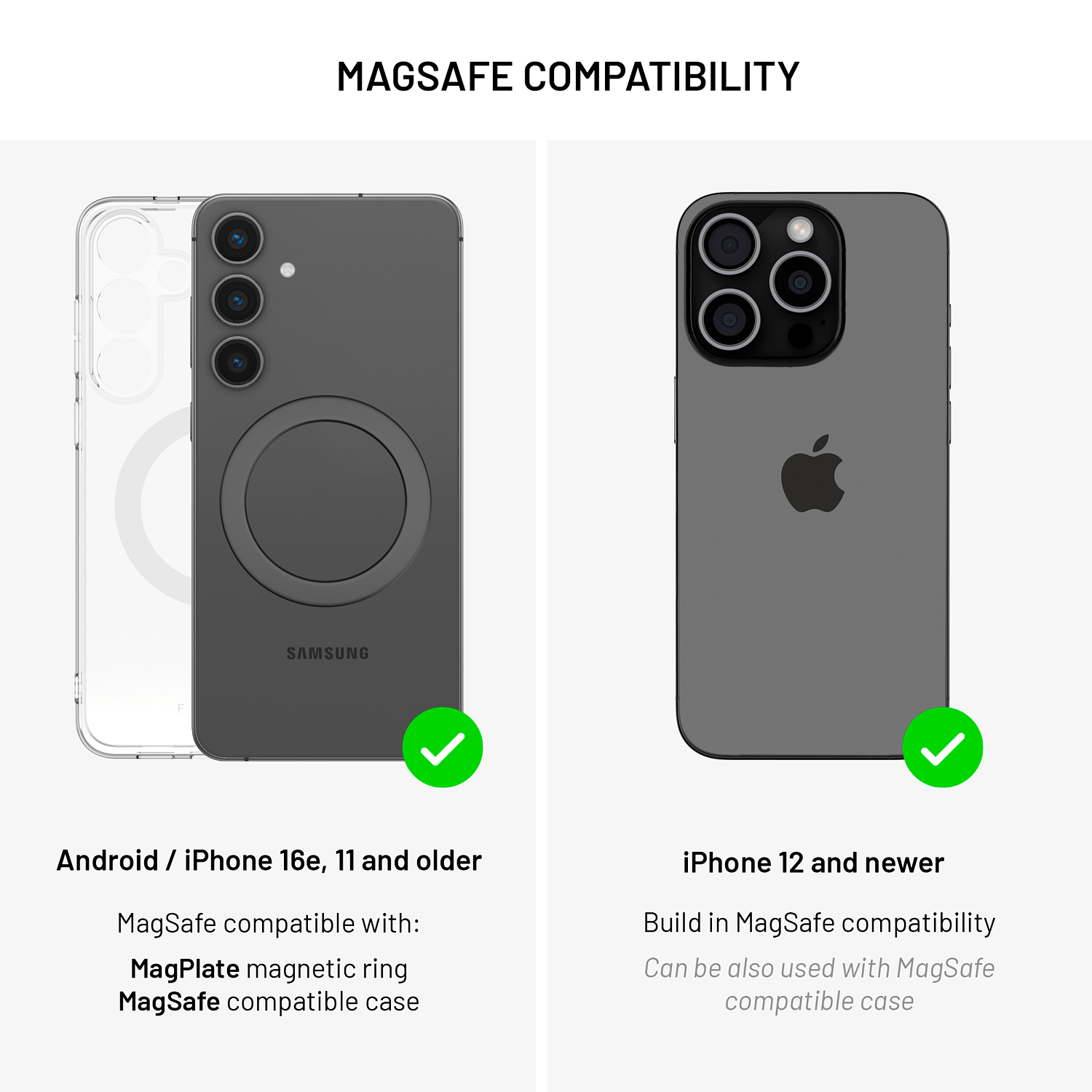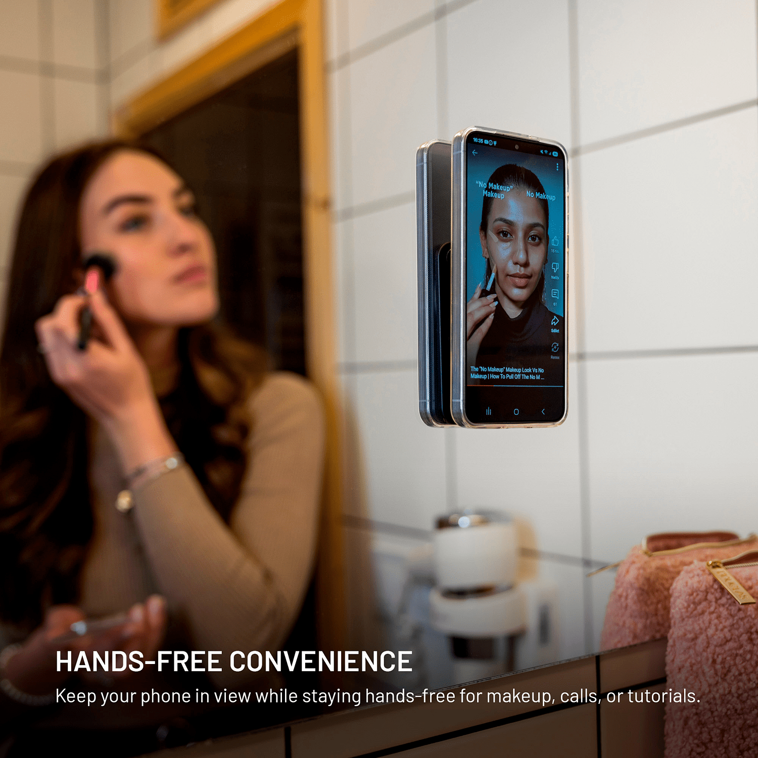 Tee puhelimen käytöstä helpompaa ja kätevämpää missä tahansa! Tämä MagSafe-yhteensopiva silikonipidike kiinnittyy luotettavasti iPhone 12:n ja uudempien mallien taakse - myös MagSafe-suojakuoren kanssa. Vahva imukuppikiinnitys tarttuu tiukasti peileihin, laattoihin, lasipintoihin ja muihin sileisiin alustoihin.