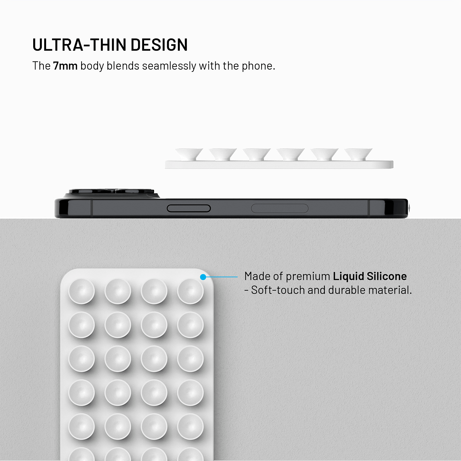 Tee puhelimen käytöstä helpompaa ja kätevämpää missä tahansa! Tämä MagSafe-yhteensopiva silikonipidike kiinnittyy luotettavasti iPhone 12:n ja uudempien mallien taakse - myös MagSafe-suojakuoren kanssa. Vahva imukuppikiinnitys tarttuu tiukasti peileihin, laattoihin, lasipintoihin ja muihin sileisiin alustoihin.