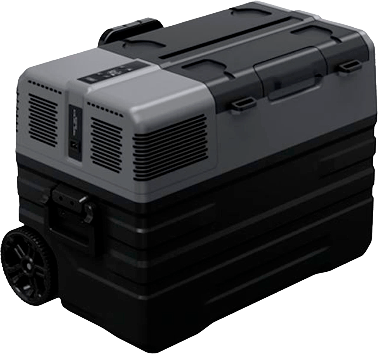 Jääkaappipakastin kestää hyvin tärinää ja kallistuksia, joten se toimii erinomaisesti kovemmassakin menossa. Kevyt muovikotelo, kahva ja renkaat mahdollistavat vaivattoman liikuttamisen. Kannessa oleva lukitus lisää turvallisuutta ja käytännöllisyyttä.