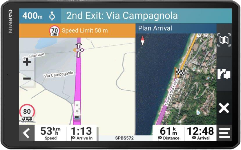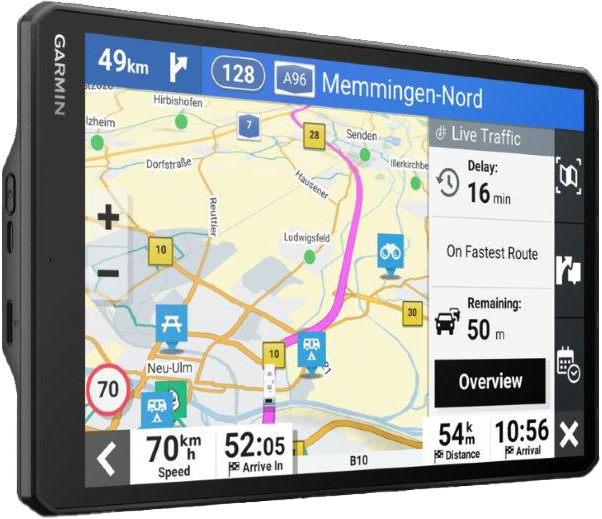 Suunnittele ikimuistoisia matkoja Camper 1095 -GPS-navigaattorilla. Suurta 10 tuuman näyttöä voi tarkastella niin pysty- kuin vaakasuunnassa, ja voit ladata Euroopan karttapäivityksiä ja lisäkarttoja. Saat käyttöösi mukautetun reitityksen matkailuautosi koon ja painon mukaan sekä tievaroitukset esimerkiksi tien jyrkistä nousuista ja mutkista. Voit käyttää matkaparkki- ja -palveluhakemistoa ja saat ehdotuksia vaihtoehtoisista maisemareiteistä. Löydät parhaat paikat reitin varrelta, saat vinkkejä tekemisestä määränpään lähellä ja näet esimerkiksi suosituimmat Michelin-kohteet kuvineen ja kuvauksineen. Näet yleiskatsauksen koko jäljellä olevasta matkasta aktiivisen reitin rinnalla sekä esimerkiksi edessäpäin odotettavissa olevan säätilan. Lisäksi saat käyttöösi BirdsEye-satelliittikuvat, joissa näkyvät ilmakuvat sujuvoittavat saapumista matkaparkkiin tai leirintäalueelle.