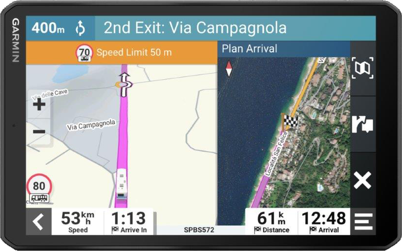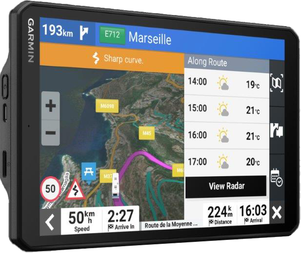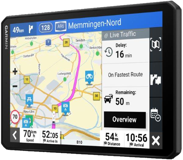 Suunnittele ikimuistoisia matkoja Camper 895 -GPS-navigaattorilla. Suurta 8 tuuman näyttöä voi tarkastella niin pysty- kuin vaakasuunnassa, ja voit ladata Euroopan karttapäivityksiä ja lisäkarttoja. Saat käyttöösi mukautetun reitityksen matkailuautosi koon ja painon mukaan sekä tievaroitukset esimerkiksi tien jyrkistä nousuista ja mutkista. Voit käyttää matkaparkki- ja -palveluhakemistoa ja saat ehdotuksia vaihtoehtoisista maisemareiteistä. Löydät parhaat paikat reitin varrelta, saat vinkkejä tekemisestä määränpään lähellä ja näet esimerkiksi suosituimmat Michelin-kohteet kuvineen ja kuvauksineen. Näet yleiskatsauksen koko jäljellä olevasta matkasta aktiivisen reitin rinnalla sekä esimerkiksi edessäpäin odotettavissa olevan säätilan. Lisäksi saat käyttöösi BirdsEye-satelliittikuvat, joissa näkyvät ilmakuvat sujuvoittavat saapumista matkaparkkiin tai leirintäalueelle.