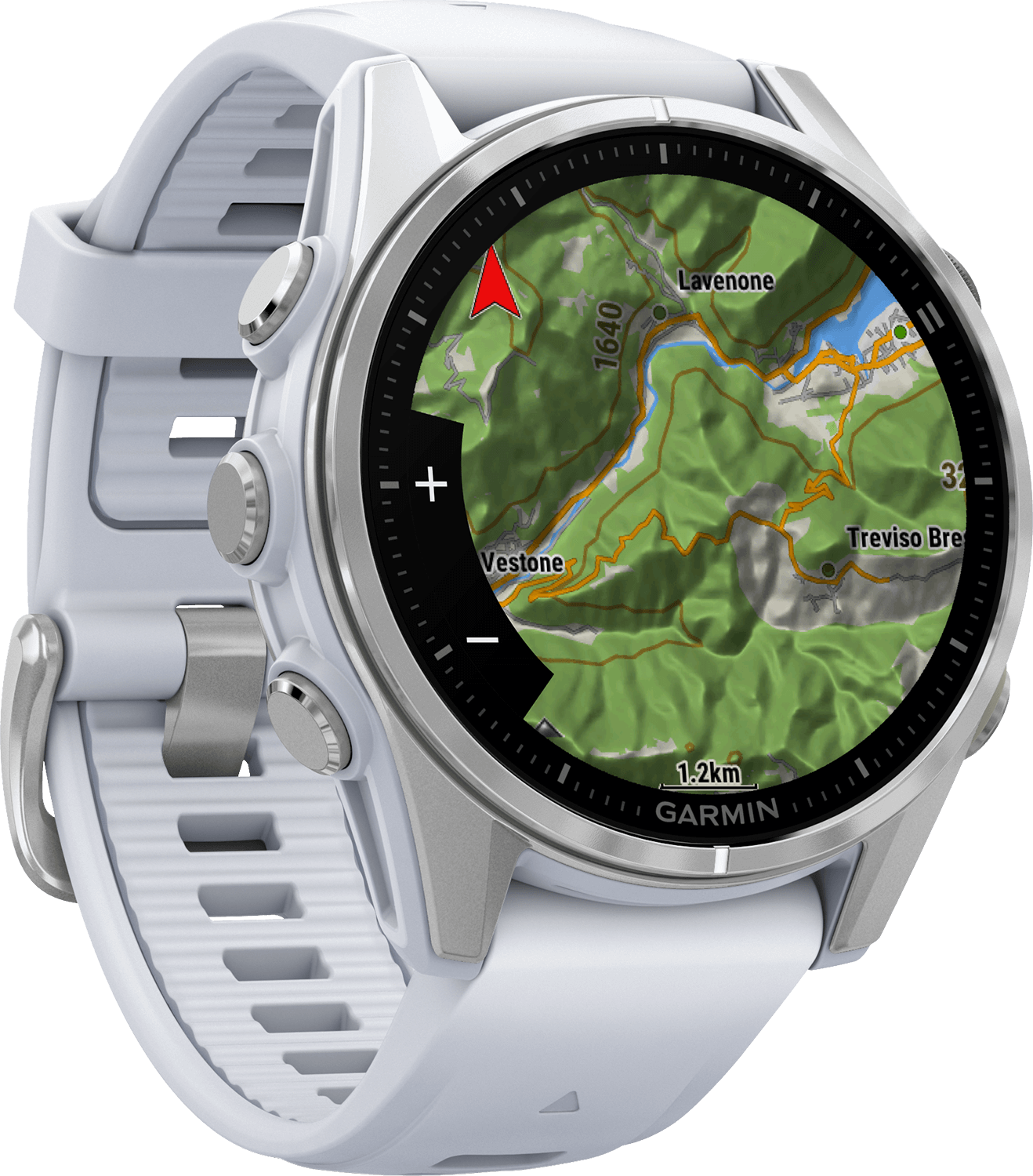 Harjoitteluvalmiusominaisuuksista näet, miten paljon palautumisaikaa tarvitset harjoitusten välillä. Tämä perustuu terveyden ja hyvinvoinnin, eli esimerkiksi syke-, hengitys-, stressi- ja unitietojen, seurantaan vuorokauden ympäri (annetut tiedot ovat tarkahko arvio seurattavista mittauksista). Saat avuksesi poluille sisäiset ABC-anturit ja TopoActive-kartat, jotka voit ladata helposti Wi-Fi®-yhteydellä. Dynaaminen kiertomatkareititys helpottaa juoksu- tai ajolenkkien suunnittelua, kun saat asettamasi tavoitematkan avulla kattavat ohjeet, jotka mukautuvat siten, että pääset takaisin alkuun aikataulussa. Akunkesto on jopa 10 päivää älykellotilassa, joten ehdit hyvin nauttia seikkailuista myös sähköverkon ulkopuolella. Lisäksi voit uppoutua seikkailuihin aivan uudella tavalla, kun kellolla on 40 metrin sukellusluokitus ja siinä on vuotamattomat metallipainikkeet. Lisäominaisuuksia ovat mm. musiikin tallennustila, Garmin Pay -lähimaksu (tuetuissa maissa ja maksuverkostoissa) ja älykkäät ilmoitukset (edellyttävät yhteensopivaa älypuhelinta).