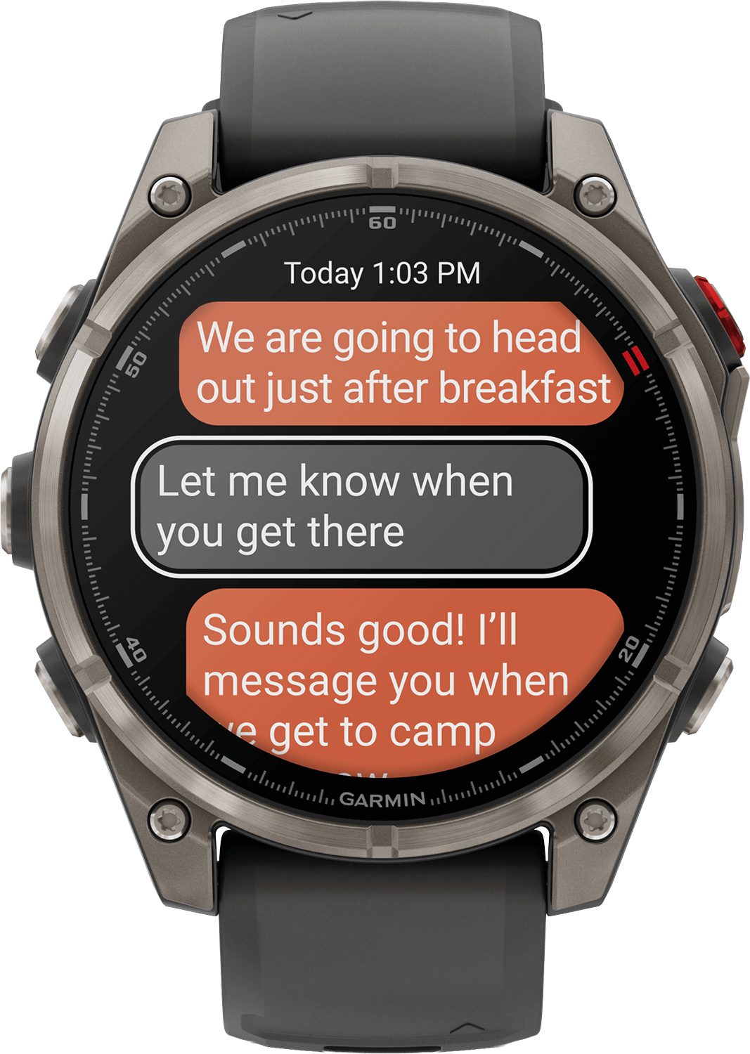 LTE-verkkoyhteyden ansiosta voit jättää puhelimen matkasta; voit lähettää ja vastaanottaa älykellolla viestejä ja soittaa äänipuheluja, ja lisäksi voit antaa kavereiden seurata menoasi LiveTrack-sijainninjaolla (päivitysväli 30 sekuntia) sekä antaa sijainti-ilmoituksia laitteen Garmin Messenger -sovelluksella (Edellyttää aktiivista tilausta. Eri lainkäyttöalueilla ja kattavuuden suhteen voi olla käytössä rajoituksia1).