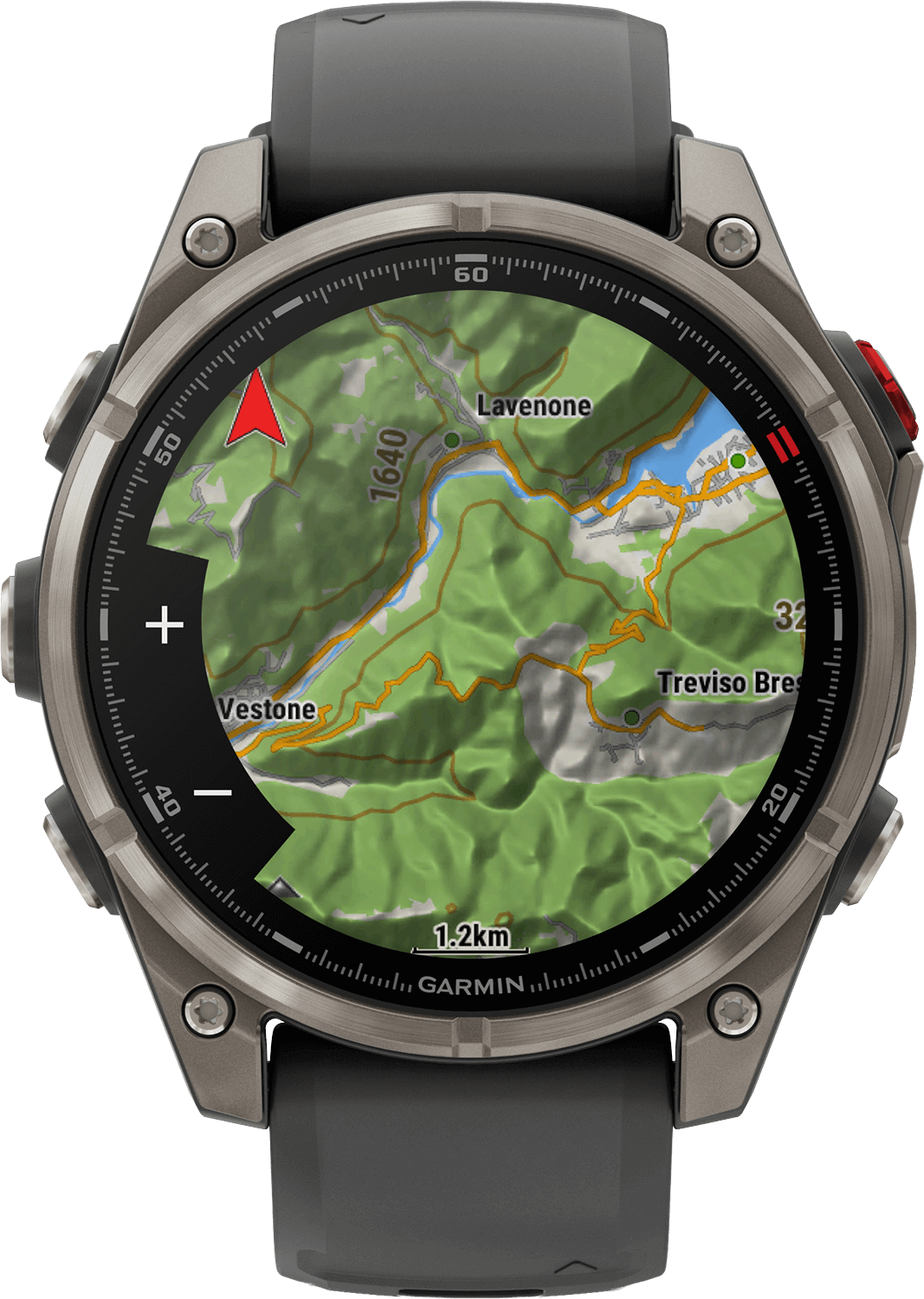 Voit navigoida esiladattujen TopoActive-karttojen ja niiden korkeuserojen varjostuksen avulla. Lisäksi käytössäsi ovat sisäiset kartat golfkentiltä ja hiihtokeskuksista