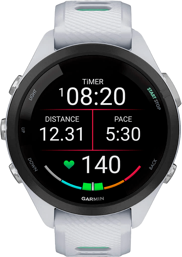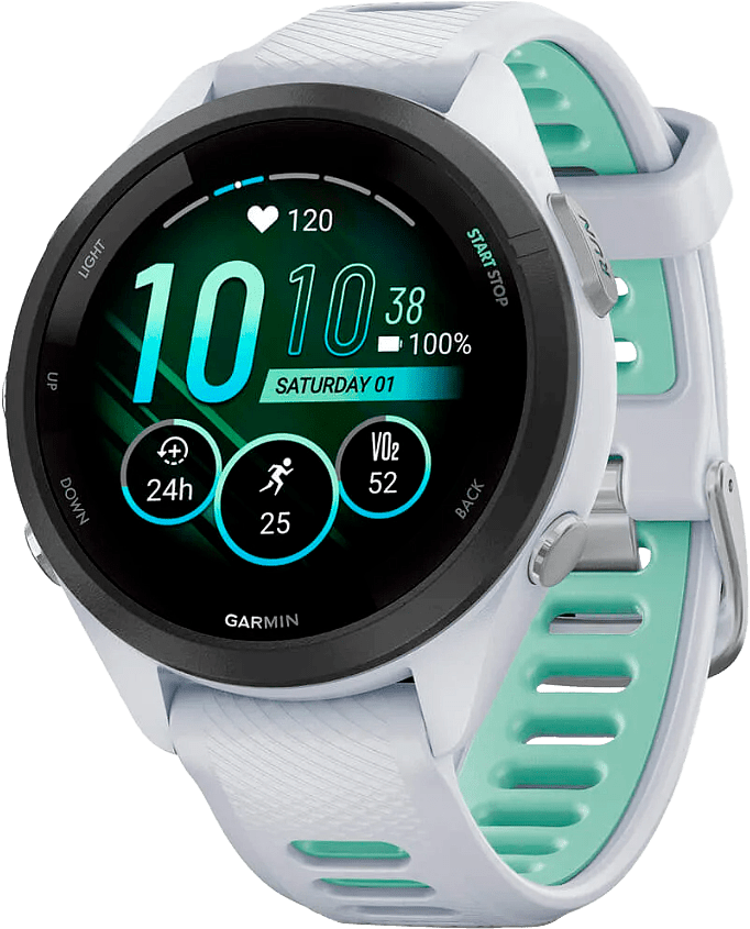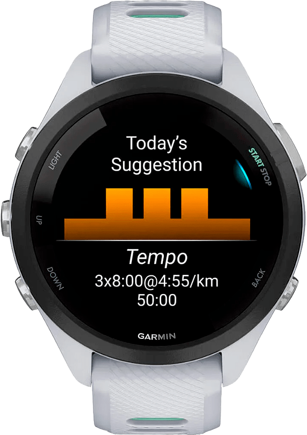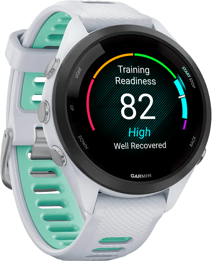 Forerunner 265S tarjoaa laajan valikoiman harjoitusohjelmia ja urheilusovelluksia, jotka tarjoavat kattavat harjoittelu- ja harjoitusominaisuudet. Yli 30 aktiivisuusprofiilin ansiosta saat tilapäivityksiä ja yksityiskohtaisia tietoja harjoittelun aikana suoraan ranteeseesi. Race Widget auttaa sinua suunnittelemaan kilpailustrategian ja tarjoaa henkilökohtaisia harjoituksia kilpailusyötteiden perusteella. Se tarjoaa vinkkejä ja päivittäisiä treeniohjeita sekä ennakoidun valmistumisajan kilpailulle, sään, kuntosuoritusarvot ja paljon muuta, mikä pitää sinut motivoituneena. Acute Load -toiminto vertailee viimeisimpiä harjoituksiasi ja tarjoaa vinkkejä optimaalisesta alueesta, kun taas Garmin Coach toimii henkilökohtaisena valmentajanasi mukautuvien harjoitussuunnitelmien ja henkilökohtaisten harjoitusten avulla. Lisäksi ranteeseen perustuva juoksudynamiikka tuottaa laajan juoksuraportin, jossa on tietoa juoksutehostasi, maakosketusajasta, askelpituudesta ja muusta.