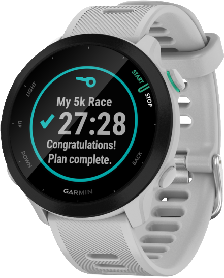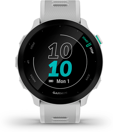Garmin Forerunner 55 on helppokäyttöinen GPS-älykello, joka on tarkoitettu kaikentasoisille käyttäjille, jotka haluavat tarkkailla suoritustietojaan ja pyrkiä kuntoilutavoitteisiinsa. Sisäisen GPS-toiminnon ansiosta voit seurata aikaa, matkaa, tahtia ja nopeutta juoksun ja kävelyn aikana. Voit seurata esimerkiksi yleistä terveyttä ja hyvinvointiasi rannesykemittarin avulla. Eikä sinun tarvitse enää arvailla harjoitellessasi, kun älykello suosittelee sinulle räätälöityjä juoksulenkkejä. Huippuluokan juoksuominaisuuksien avulla saavutat tavoitteesi. Sisäisten suoritusprofiilien avulla voit seurata muitakin lajeja kuin juoksua. Eikä laitetta tarvitse olla jatkuvasti lataamassa, sillä akun virta riittää jopa 2 viikoksi. Kevyt ja käytössä miellyttävä älykello sopii täydellisesti niin juoksuun kuin arkeen.