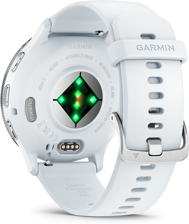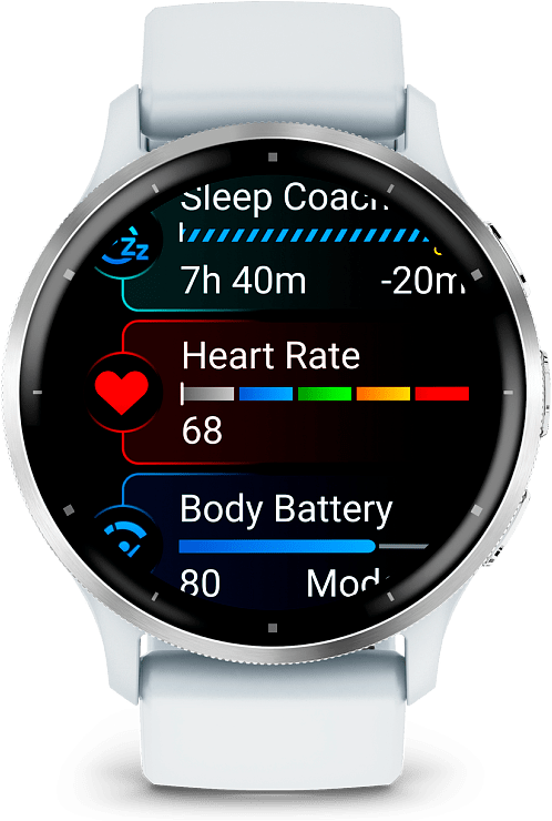 Tunne itsesi aidosti Garmin Venu 3 -älykellojen ansiosta. Laadukkaat valmentajat ranteessa on suunniteltu tukemaan tavoitteitasi. GPS-älykelloissa on edistykselliset hyvinvointi- ja kuntoiluominaisuudet nimenomaan parantamaan ymmärrystäsi kehostasi. Body Battery -energianseurannalla voit tarkkailla energiatasoasi, ja saat henkilökohtaista tietoa esimerkiksi unen, torkkujen, stressin ja harjoitusten perusteella. Paranna unesi laatua henkilökohtaisen univalmentajan ja torkkujen tunnistuksen avulla. Avuksi saat myös lisää tietoja, kuten sykevaihtelun tilan (annetut tiedot ovat tarkahko arvio seurattavista mittauksista).