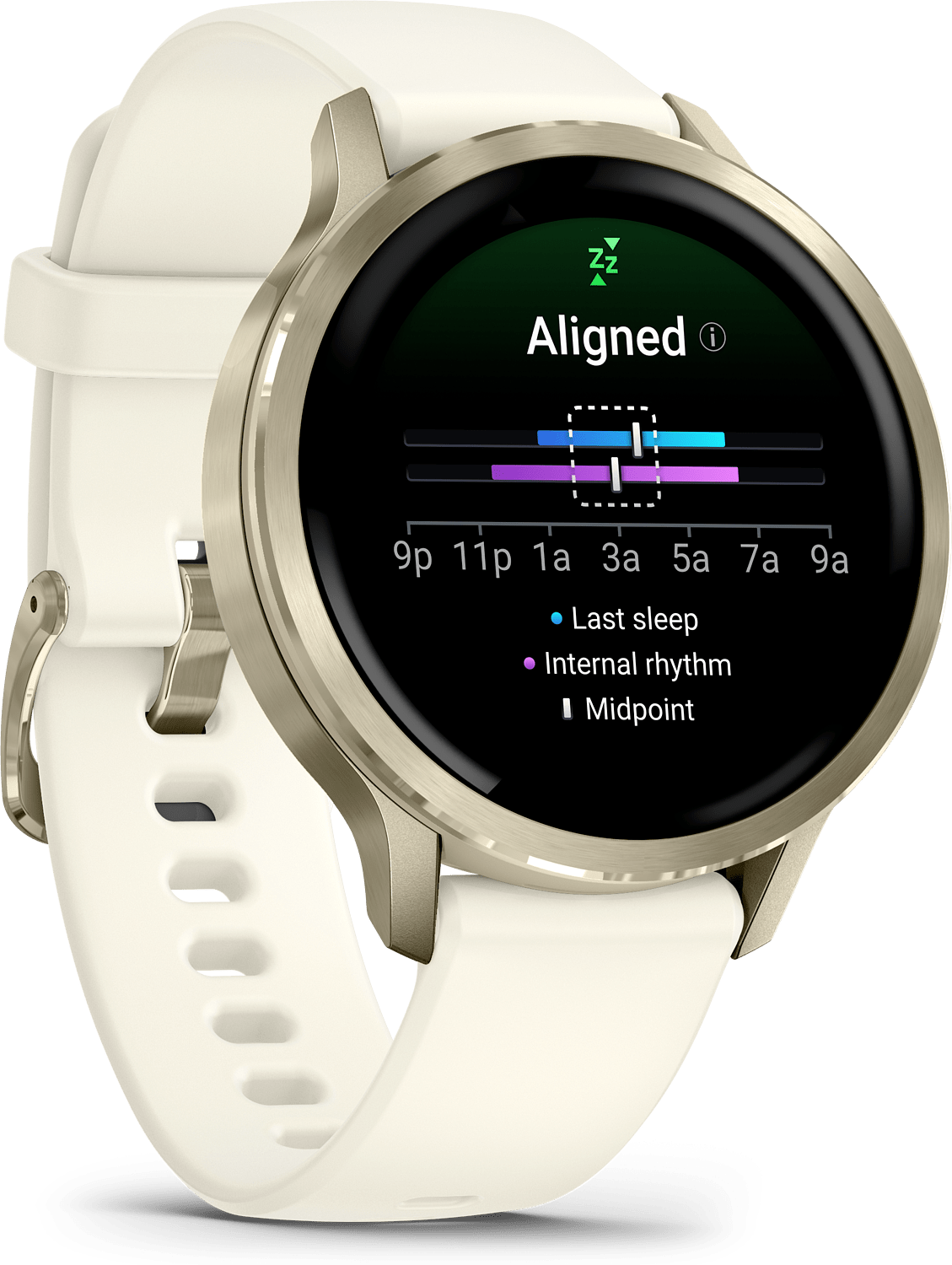 Saat unipisteet sekä henkilökohtaista valmennusta unentarpeestasi sekä vinkkejä unen parantamiseen. Voit seurata jopa unen vaiheita ja torkkujasi ja näet keskeiset mittaukset, kuten sykevälivaihtelun tila ja ihon lämpötila, jotta tiedostat terveydentilasi entistä paremmin. Unen kohdistumistoiminnolla näet vuorokausirytmisi tilan ja unesi säännöllisyyden.