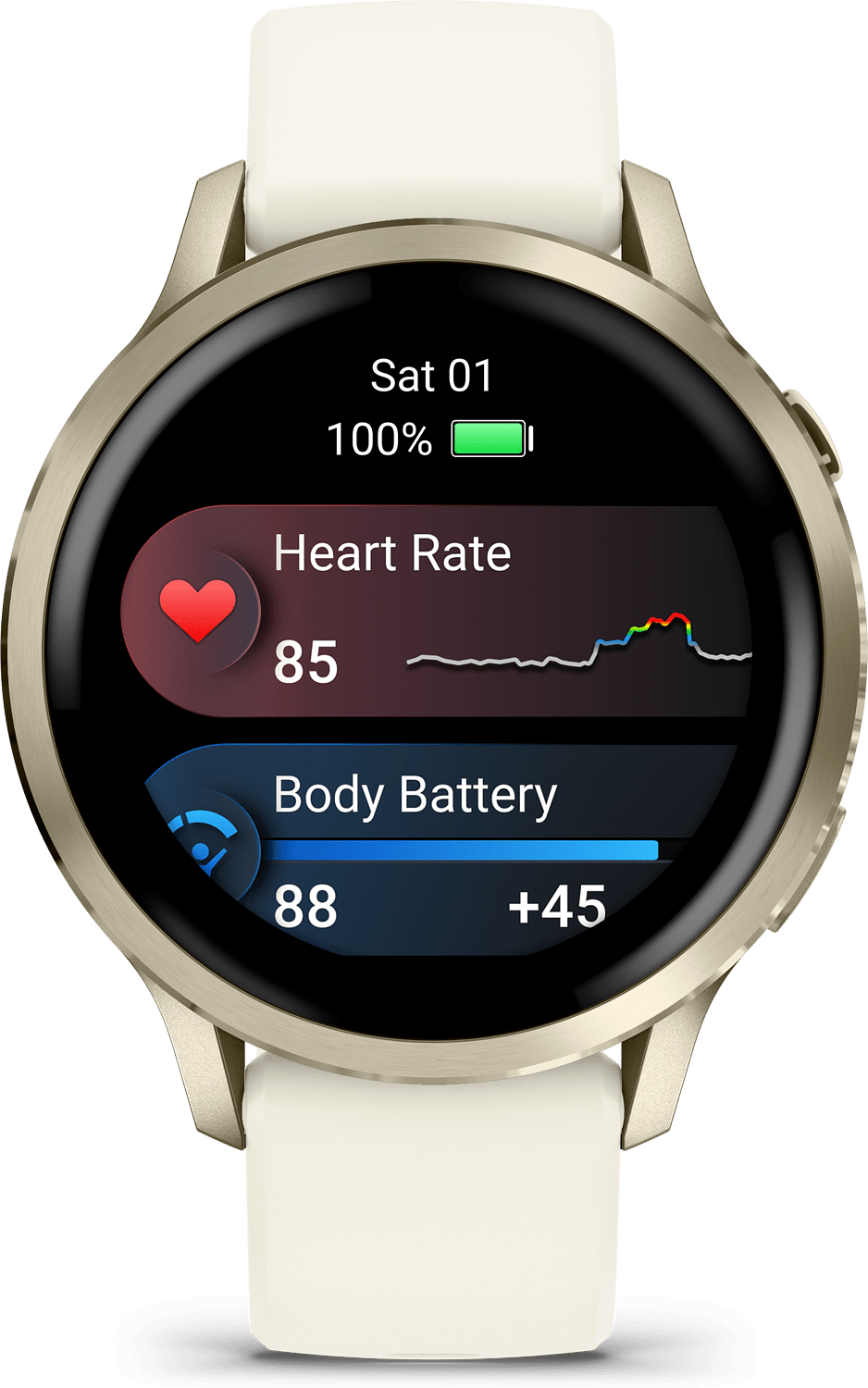 Edistä entistä terveellisempää elämäntyyliä kattavilla terveydentilan seurantaominaisuuksilla, joita ovat Body Battery -energianseuranta, stressi, pulssioksimetri1 sekä naisen terveyden seuranta, joka sisältää mm. menneiden ovulaatioiden arvioita, ja paljon muuta.